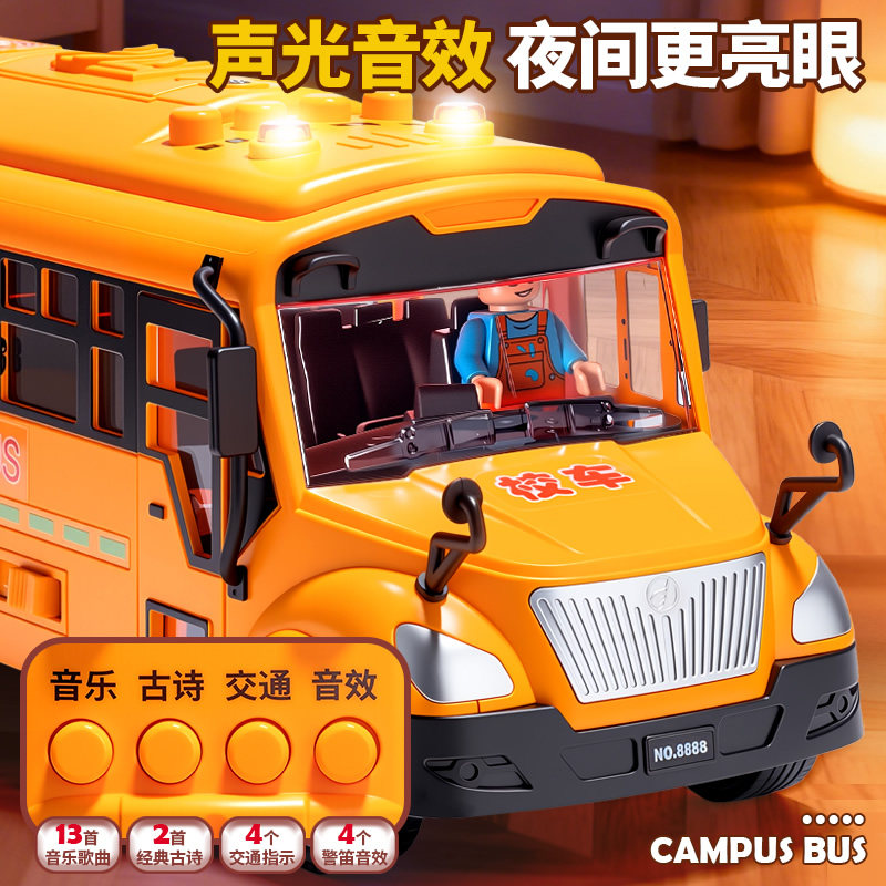 📚 大号校车玩具巴士儿童公交车男孩仿真合金小汽车模型女孩宝宝3岁6