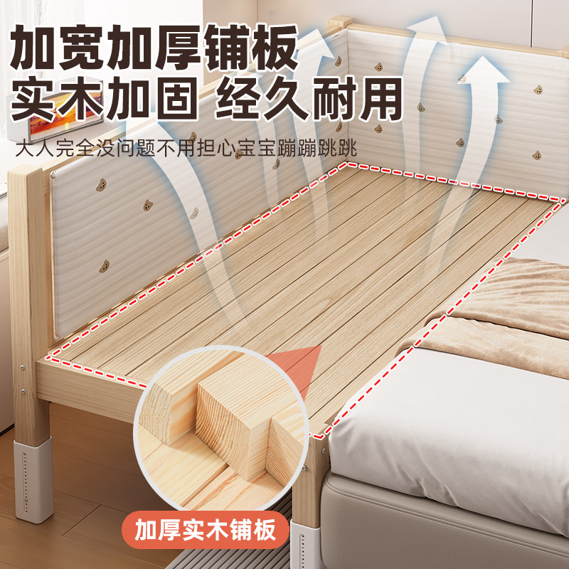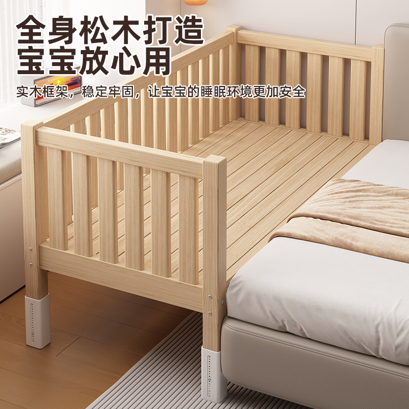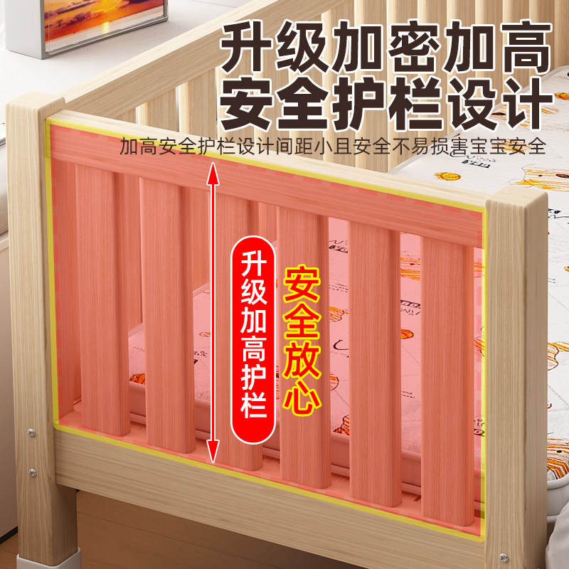📚 拼接床全实木婴儿床加高护栏男孩女孩儿童床可调节大人加宽延边床