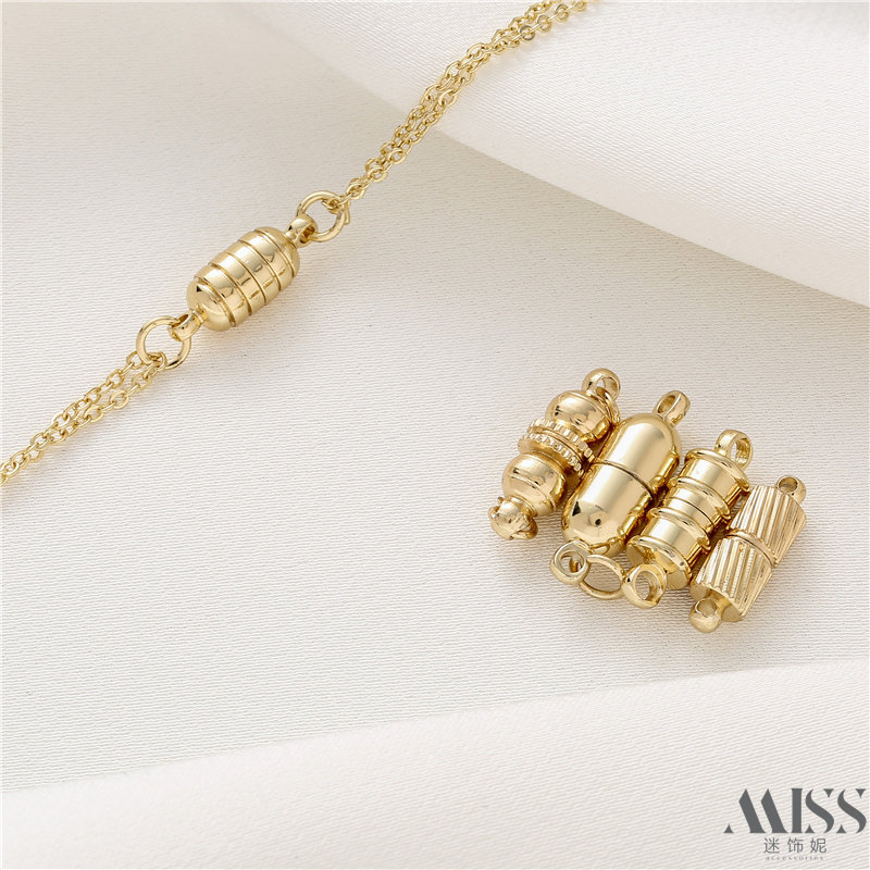 📚 14K包金保色光面椭圆药丸形螺纹竹节桶形连接磁扣diy配件手链项链