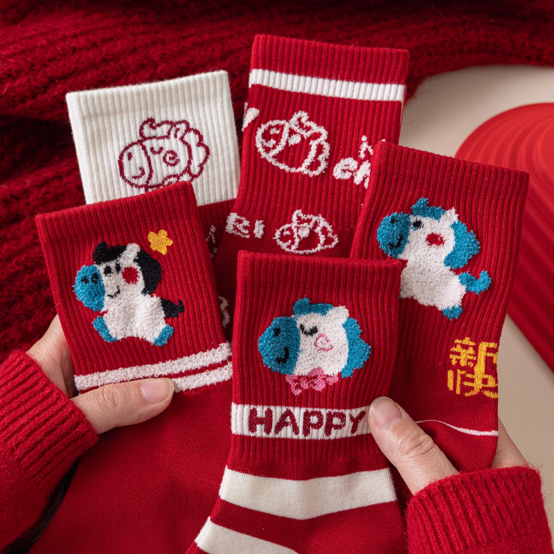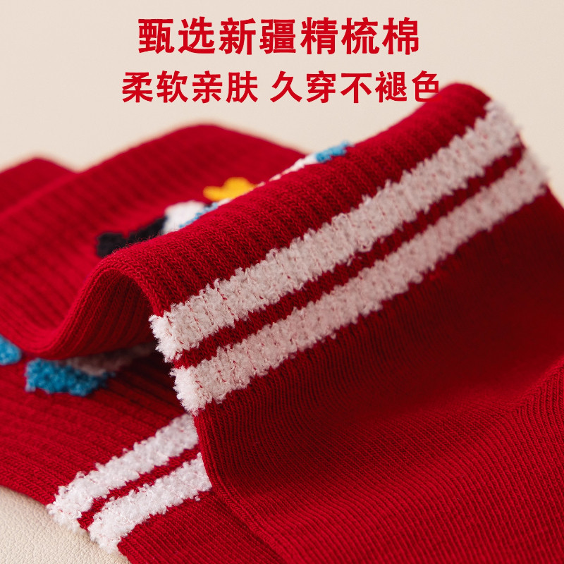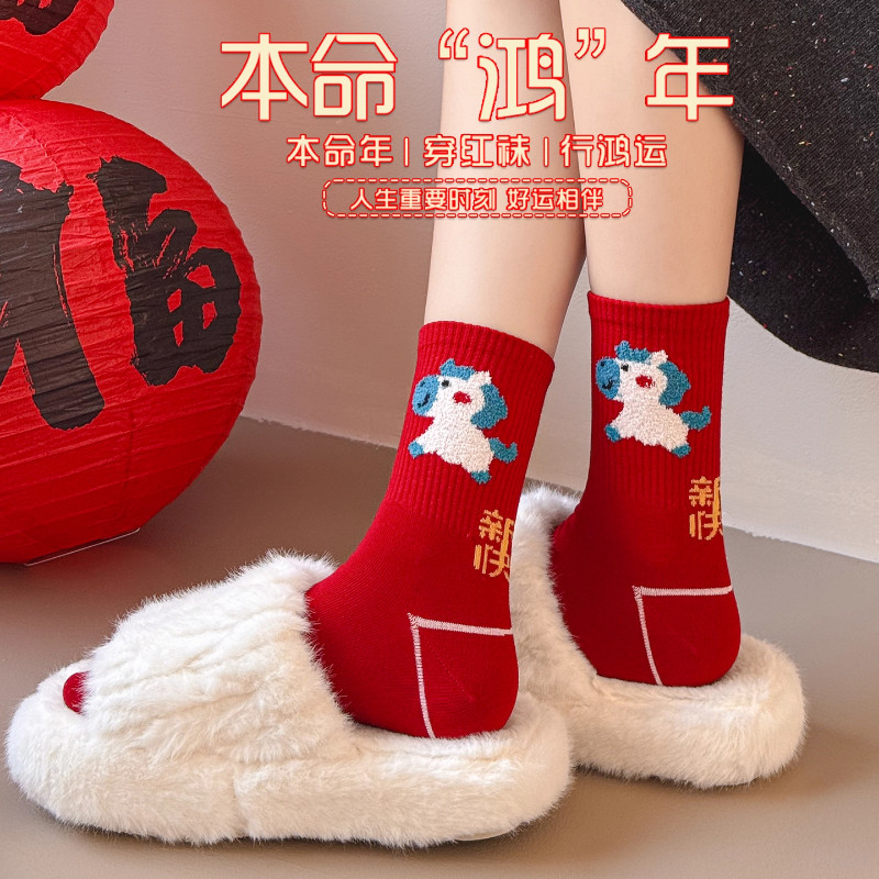 📚 马年大红色袜子男女新年礼盒装中筒2026属马喜庆可爱卡通小马长袜