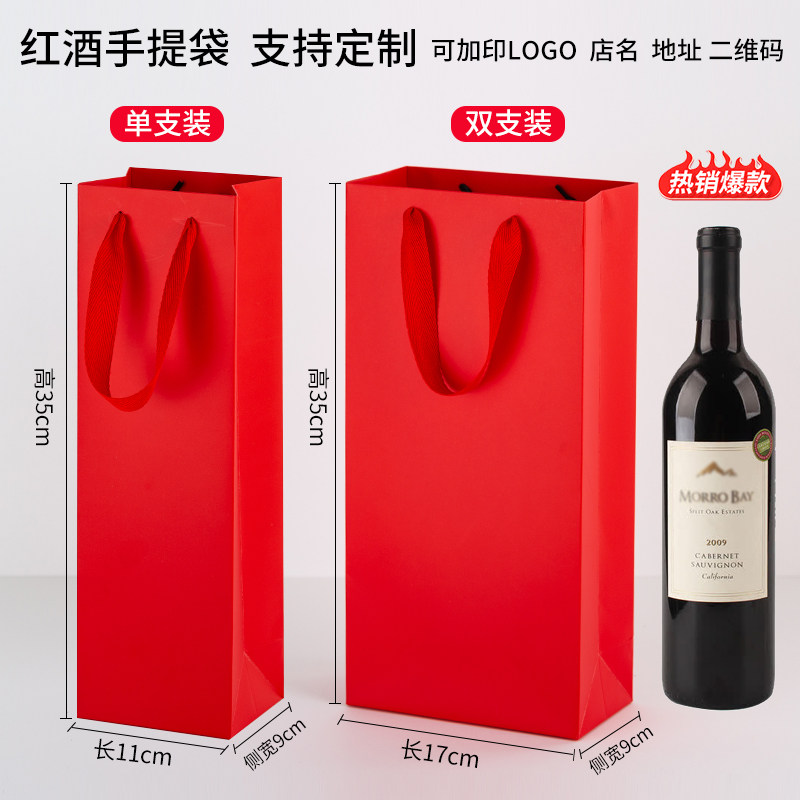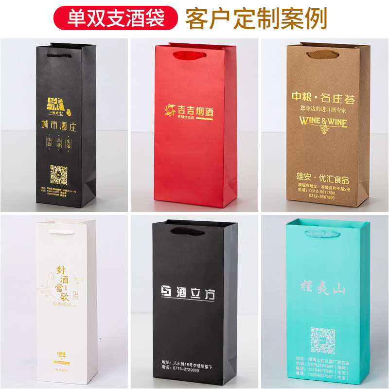 📚 加厚礼品袋子黄牛皮纸袋单双支装红酒葡萄酒袋子手提送礼定制logo