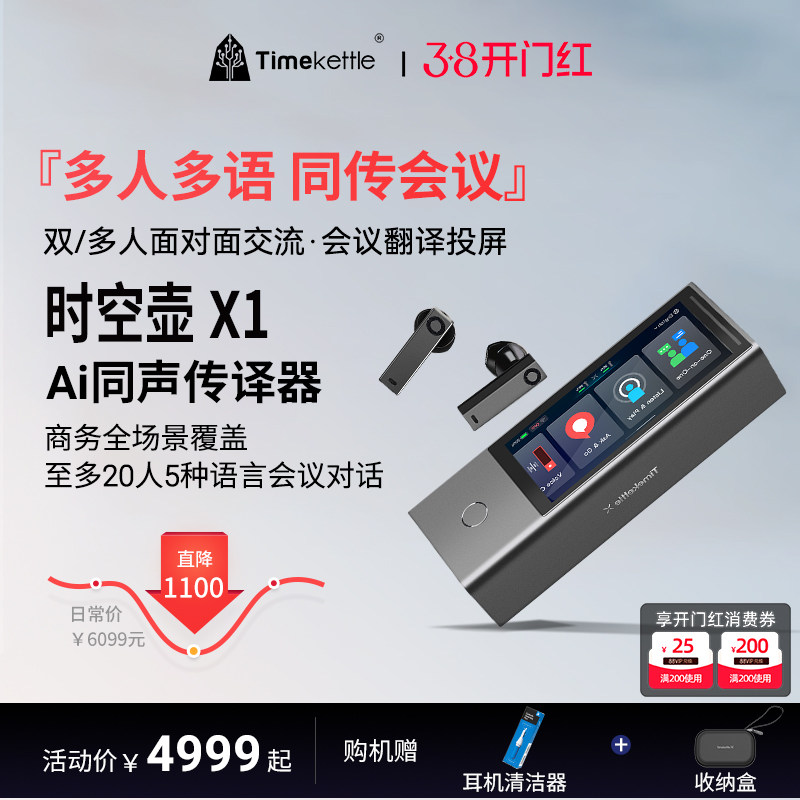 📚 时空壶Timekettle X1翻译机同声传译翻译耳机多人会议实时英语多国语言对话离线翻译设备出国神器语译翻译器