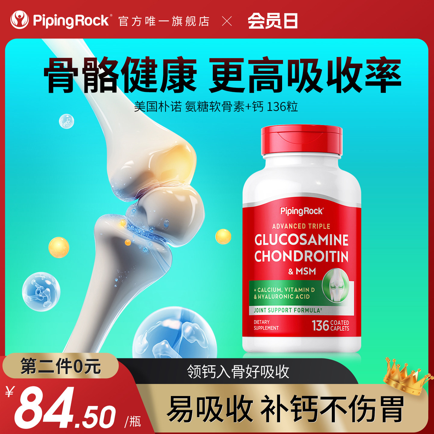 📚 朴诺氨糖红瓶氨基葡萄糖胺软骨素片MSM维骨力1500mg关节不疼