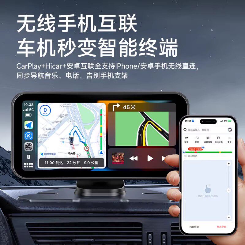 📚 九音Carplay车载便携屏Hicar导航仪智慧屏行车记录仪车载导航