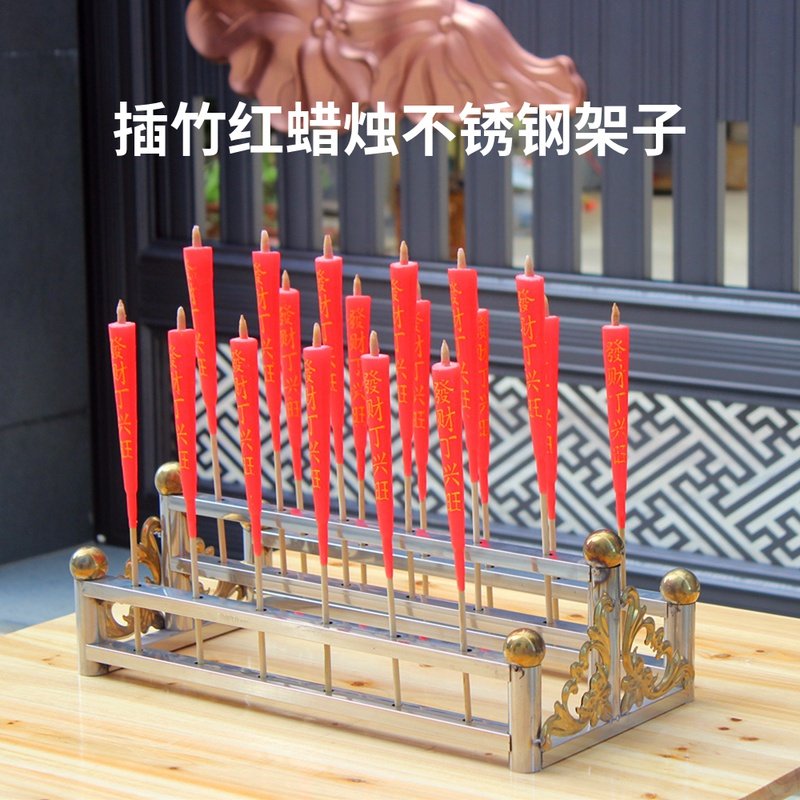 📚 不锈钢蜡烛烛台插带竹签红蜡烛圆柱家用佛堂潮汕香烛座供佛烛架