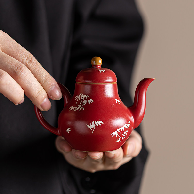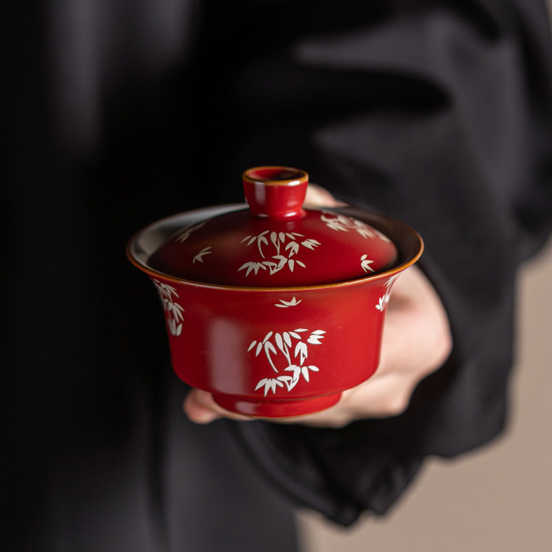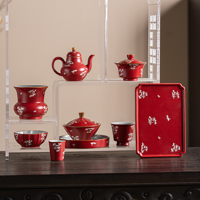 📚 新品红色汝瓷盖碗陶瓷功夫茶具配件家用小泡茶壶茶杯喝茶高档托盘