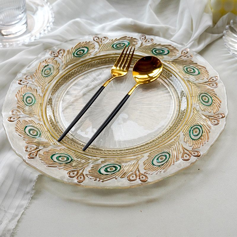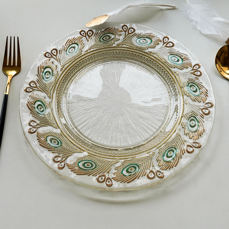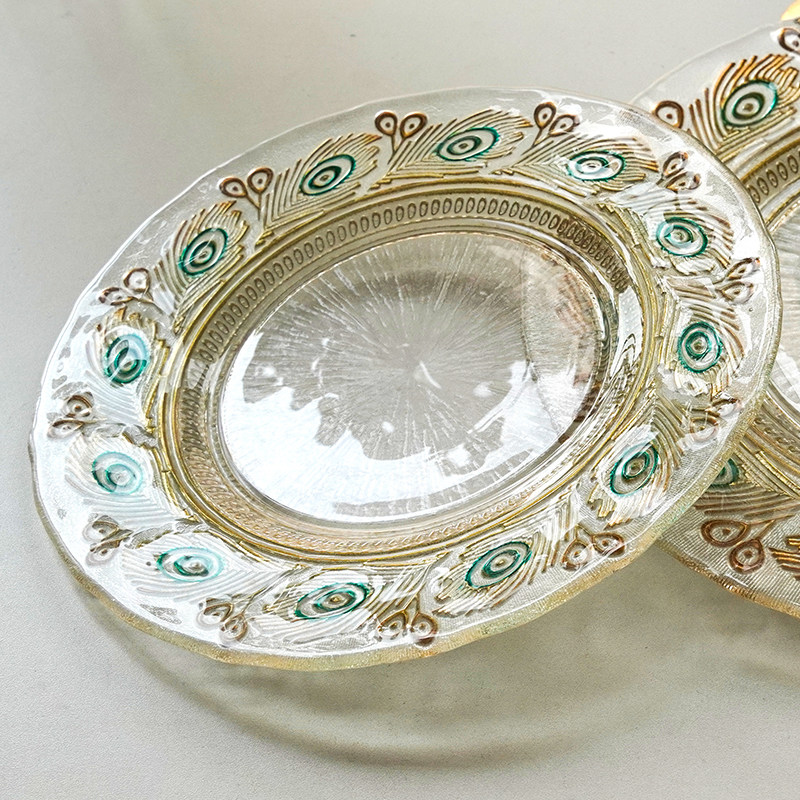 📚 创意中式孔雀玻璃盘人工手绘盘子复古风精致水果盘风格装饰盘摆件