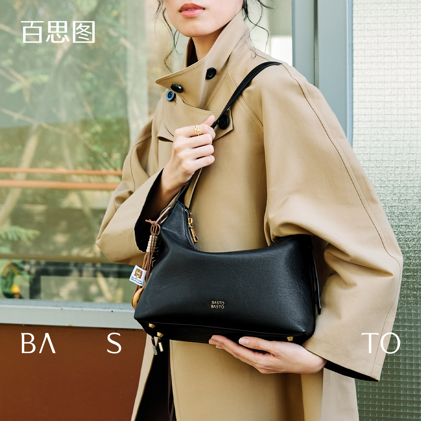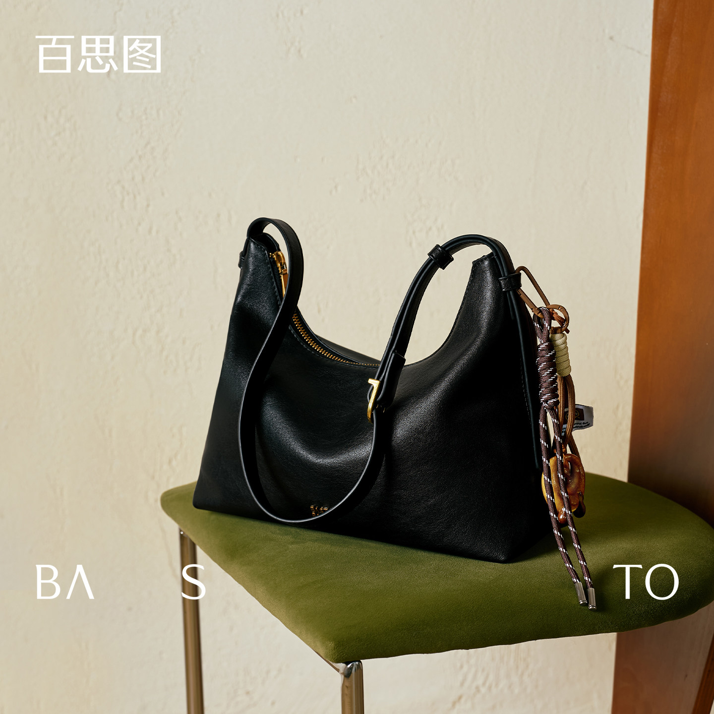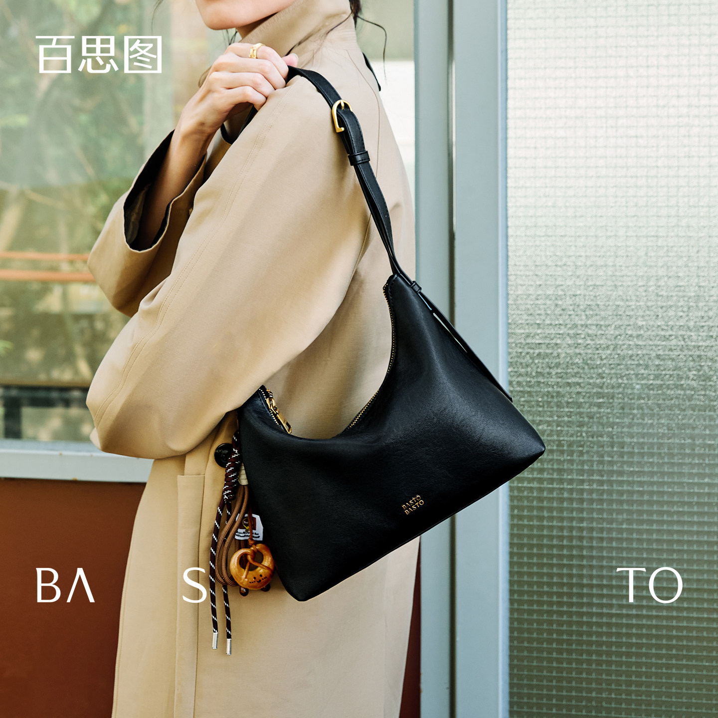 📚 百思图包包女2026新款斜挎包女单肩包植鞣女包HOBO大容量托特包
