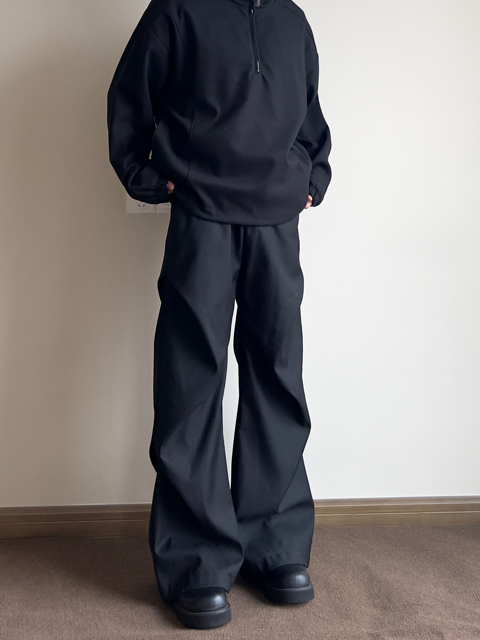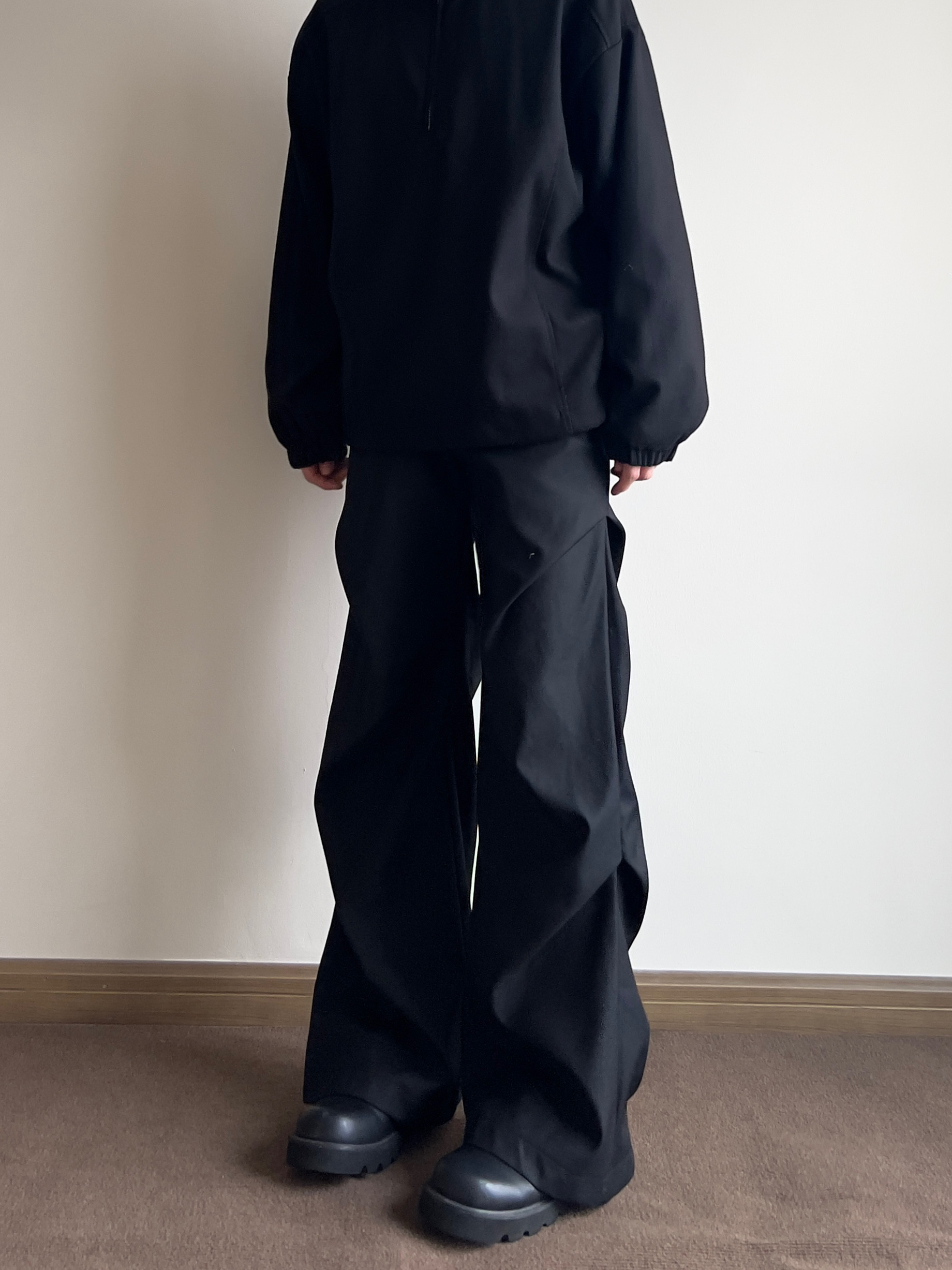 📚 COCKTAIL cleanfit小众设计感褶皱宽松休闲阔腿微喇拖地裤男