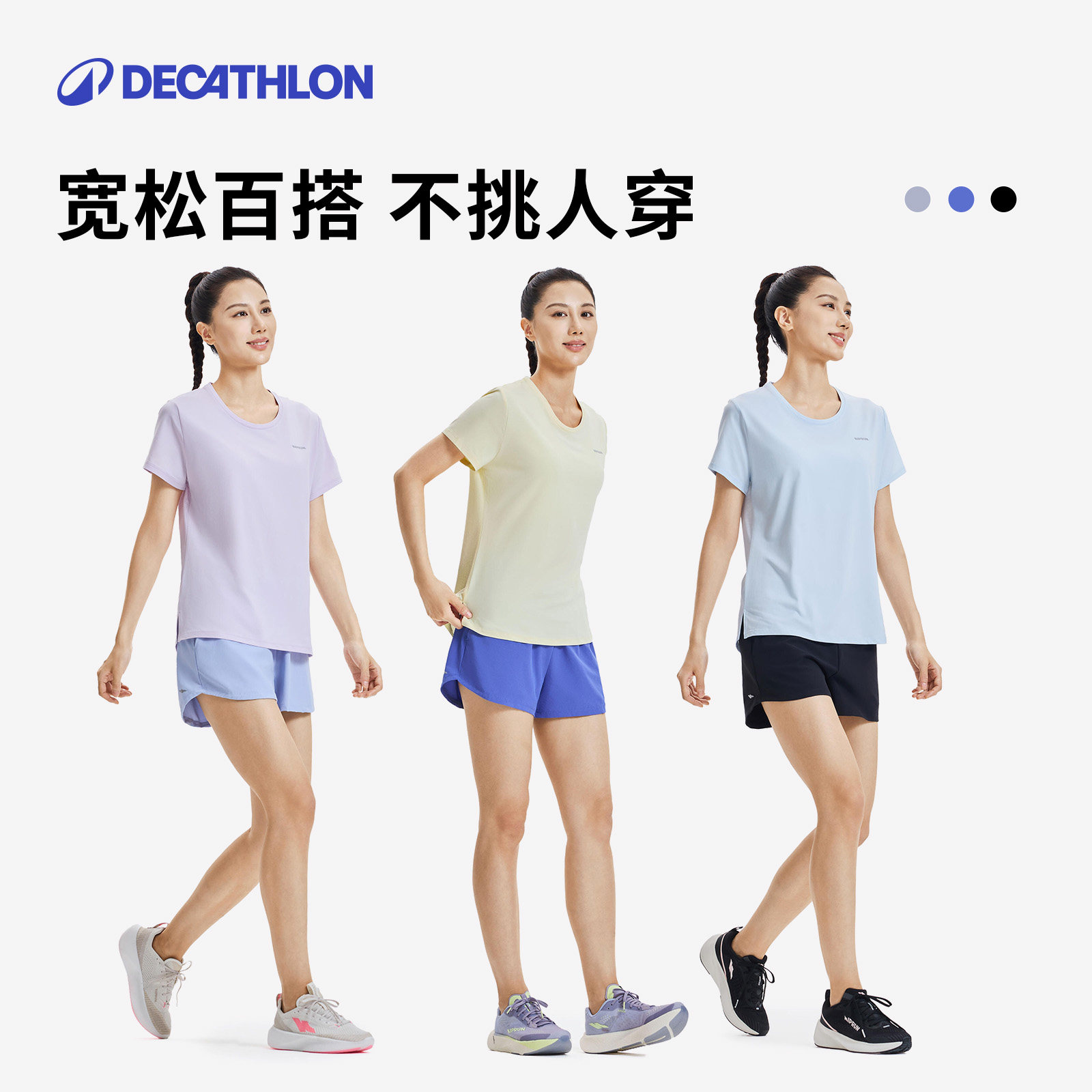 📚 迪卡侬三分跑步速干短裤可放手机长跑马拉松运动宽松健身女SAY3