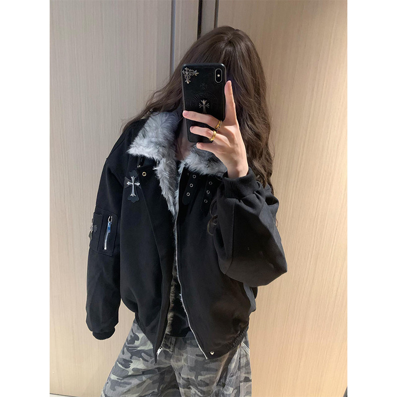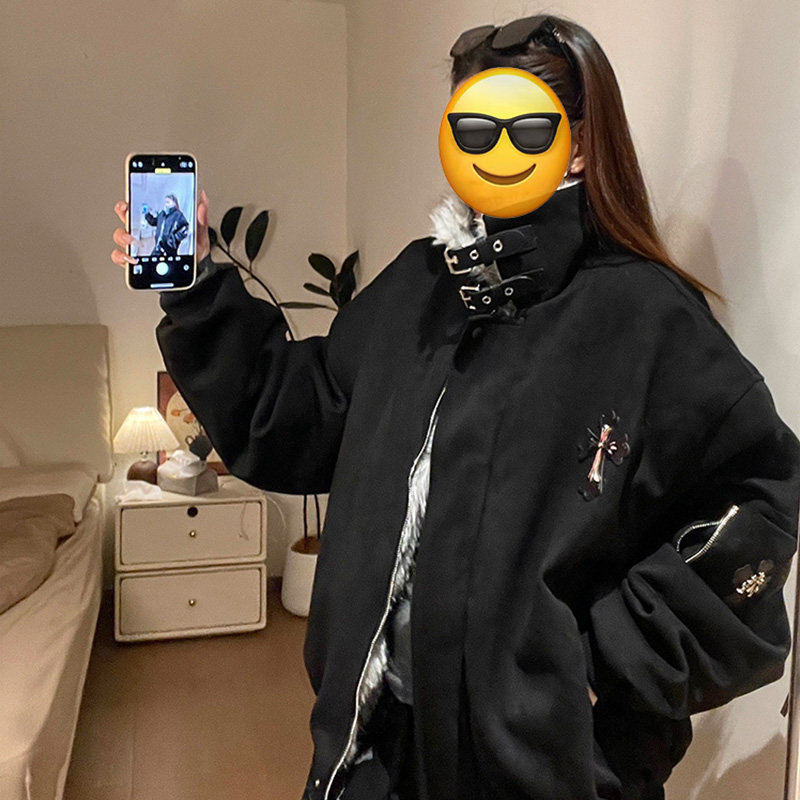 📚 美拉德棕咖色毛领十字架座山雕外套棉服男女冬季加厚保暖棉衣夹克