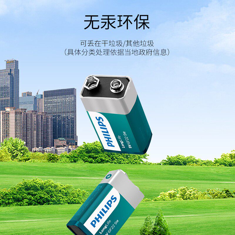 📚 飞利浦正品9v碳性碱性电池九伏方形方块万表通用烟雾报警器体温枪九伏万用表红外线测温仪专用仪器遥控器6f22