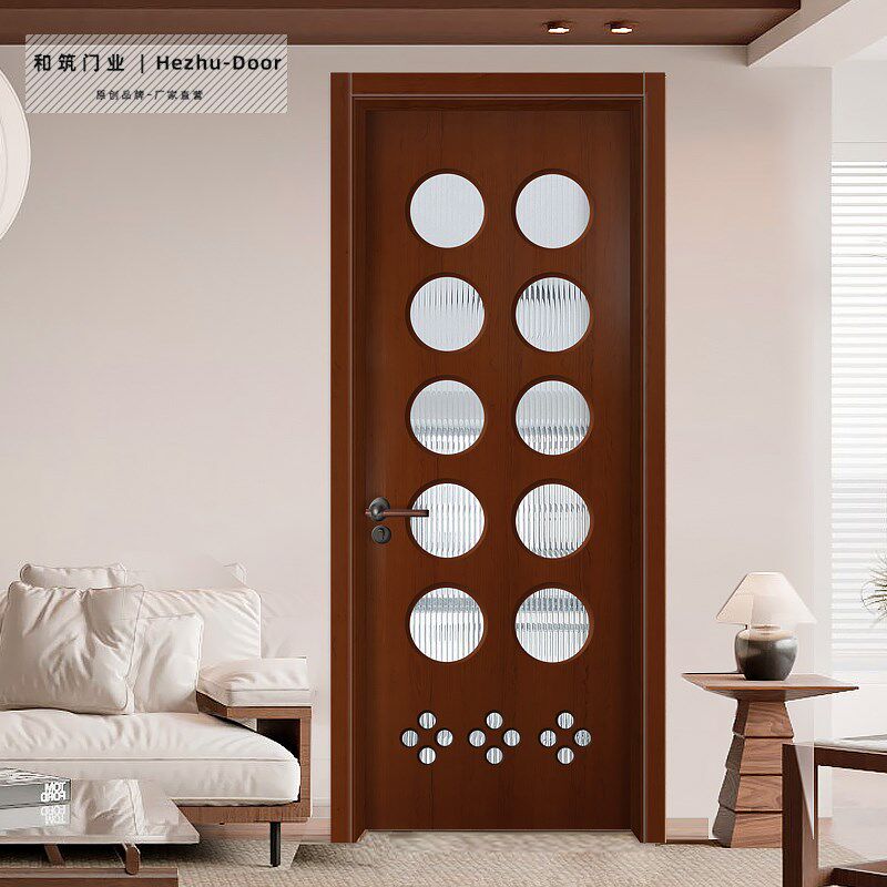 📚 和筑门业复合实木烤漆中古风洞洞门定制室内卧室房间门套装实木门