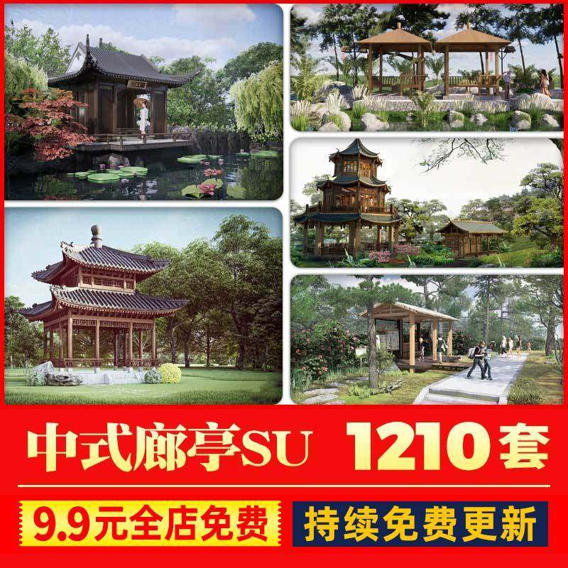 📚 新中式廊亭凉亭廊架亭子公园广场景观仿古园林建筑su模型Sketchup