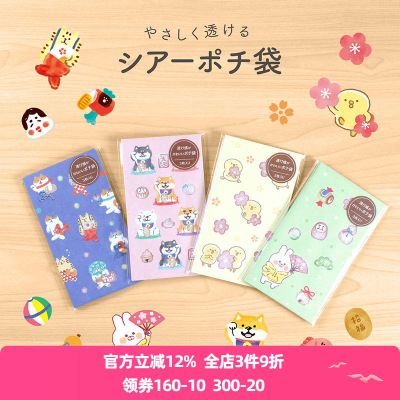 📚 日本mind wave信封信纸套装可爱红包袋压岁钱包部分热加工透明吱吱豆兔子muu酱柴犬咕噜猫3套留言卡闺蜜书信