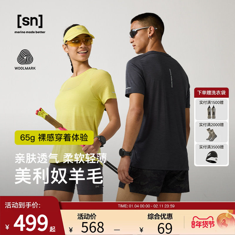 📚 SN美利奴羊毛短袖T恤女跑步短袖16.5微米羊毛T恤50/50超轻系列