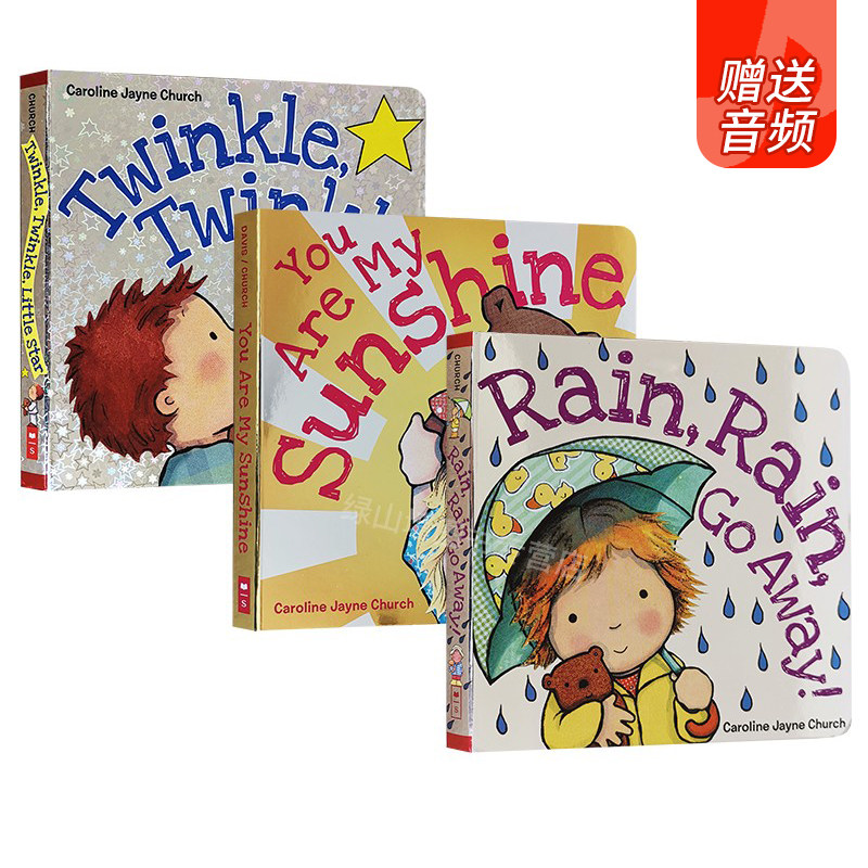 📚 爱的晚安歌谣系列3册 Caroline Jayne Church 卡洛琳杰恩 英文原版儿童纸板绘本 Rain Rain Go Away/Twinkle Twinkle Little Star