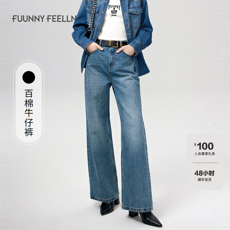 📚 【折扣新降】FF仿佛冬季新款牛仔裤女蓝色复古直筒高腰阔腿小个子