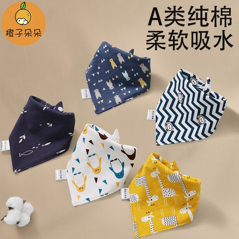 📚 三角巾婴儿口水巾男宝三角形纯棉围嘴a类宝宝新生儿围兜加大夏季