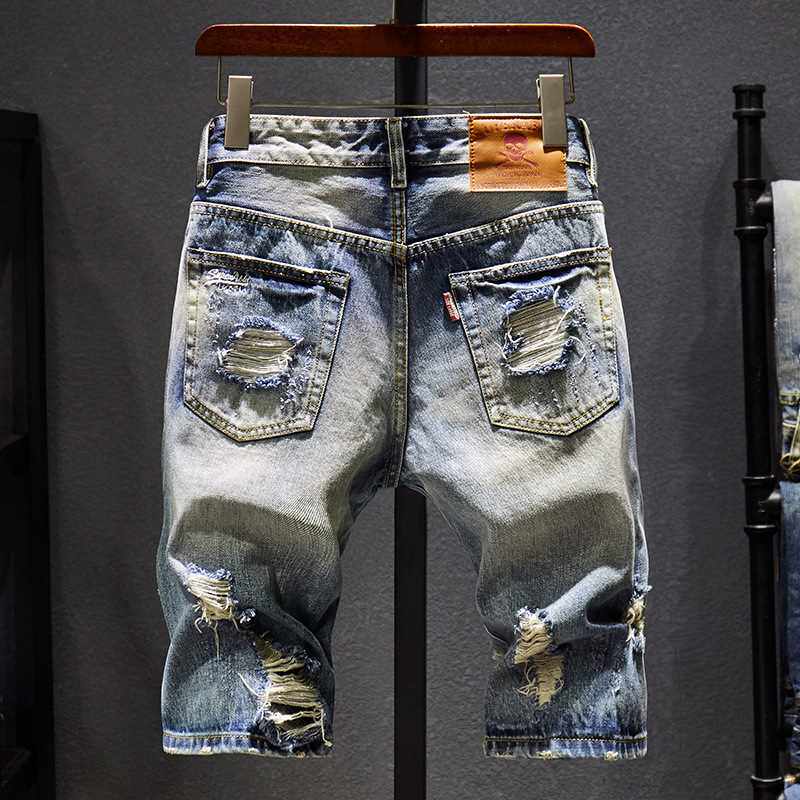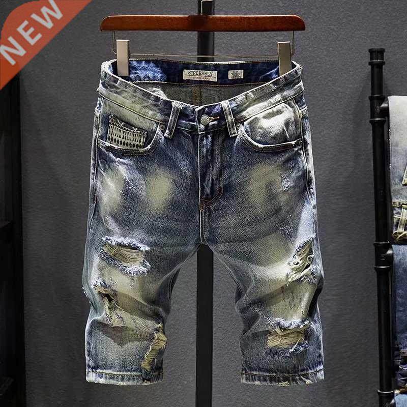 📚 Summer New Men's Stch Ripped Short Jeans Fashion Casual Loos
