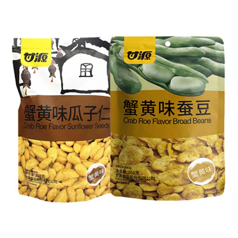 📚 甘源208g蟹黄味蚕豆/蟹黄味瓜子仁休闲小零食小吃下酒休闲食品