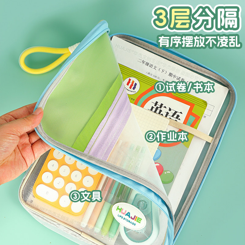 💥华杰多巴胺拼色科目分类袋:小学生文具大揭秘🔍
