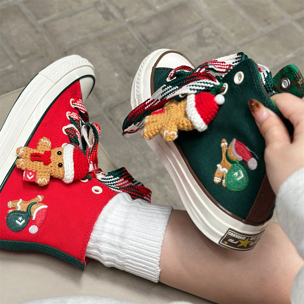 📚 匡威1970S圣诞节限定姜饼人玩偶高帮帆布A12455c绿色A12454c红色