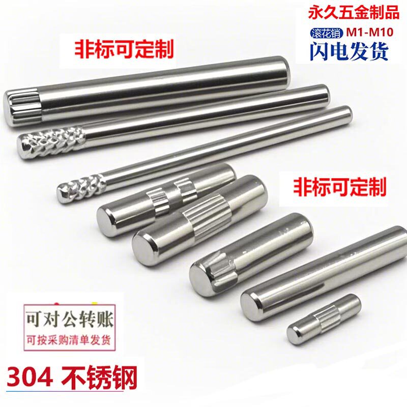 📚 不锈钢滚花销销合页销玩具城连接杆锁具圆柱定位销搓花轴M1.5-M8