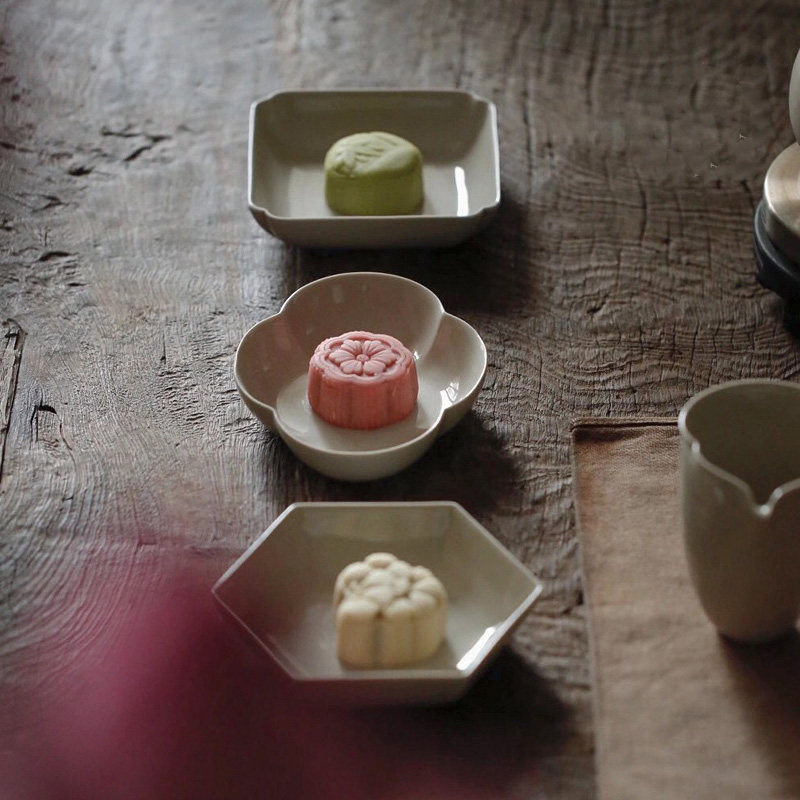 📚 素色茶点碟草木灰釉花窗陶瓷壶承零食小果盘中式新品包邮闲趣别院