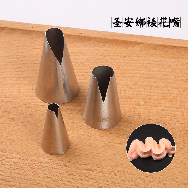 📚 圣安娜裱花嘴580中号不锈钢无缝深V型奶油曲奇挤花嘴韩式裱花蛋糕