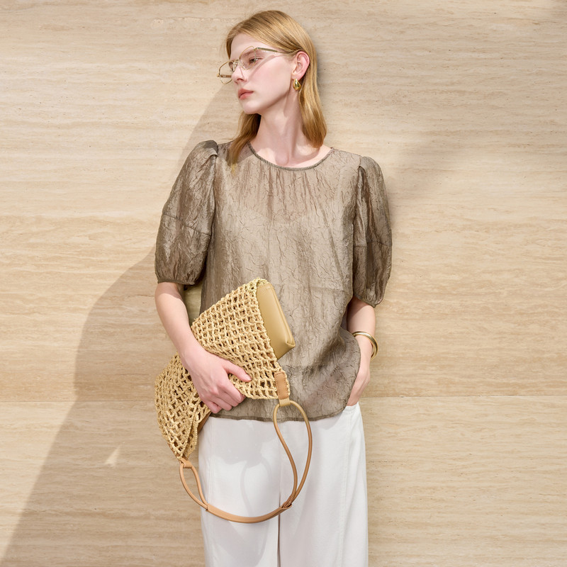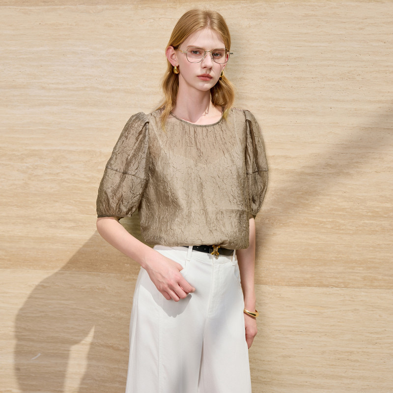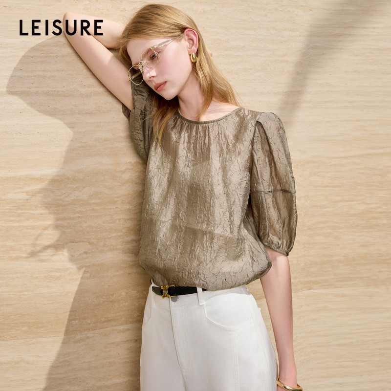 📚 【159元任选2件】三彩丽雪leisure2025夏季新款肌理感中袖上衣宽