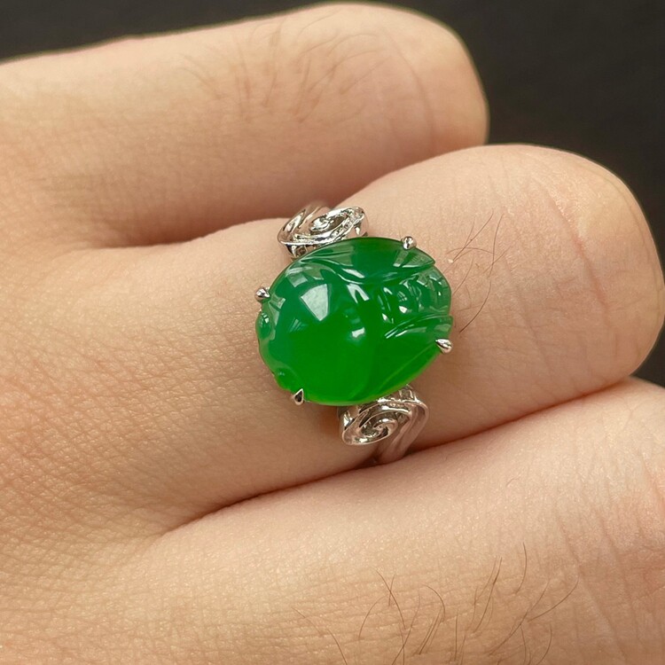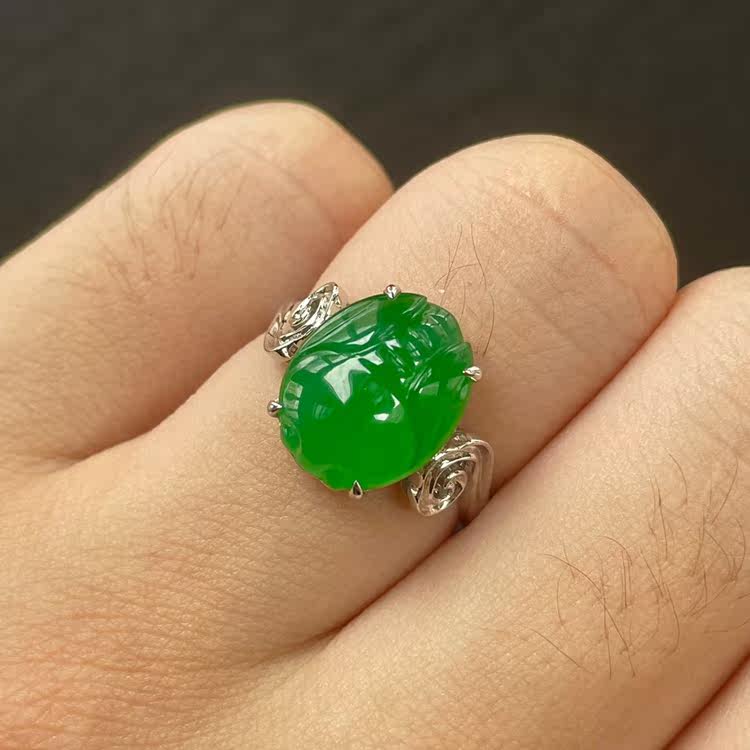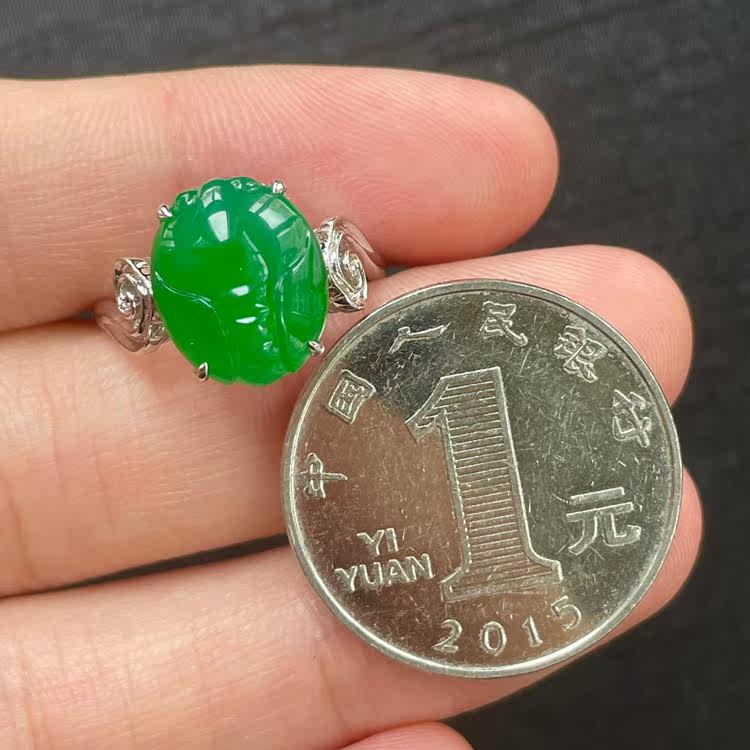 📚 一鸣惊人 冰种老坑满阳绿金蝉翡翠戒指 卖相好种水细腻女玉戒配证