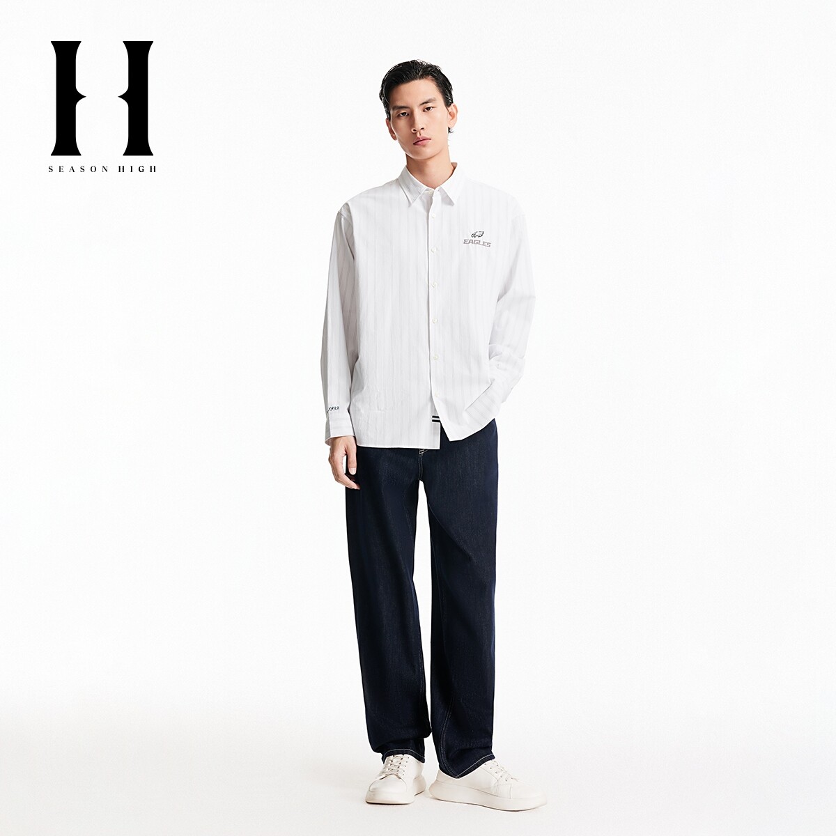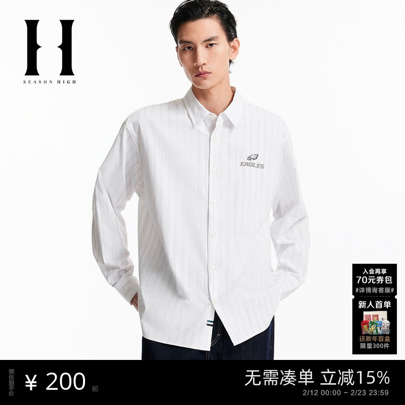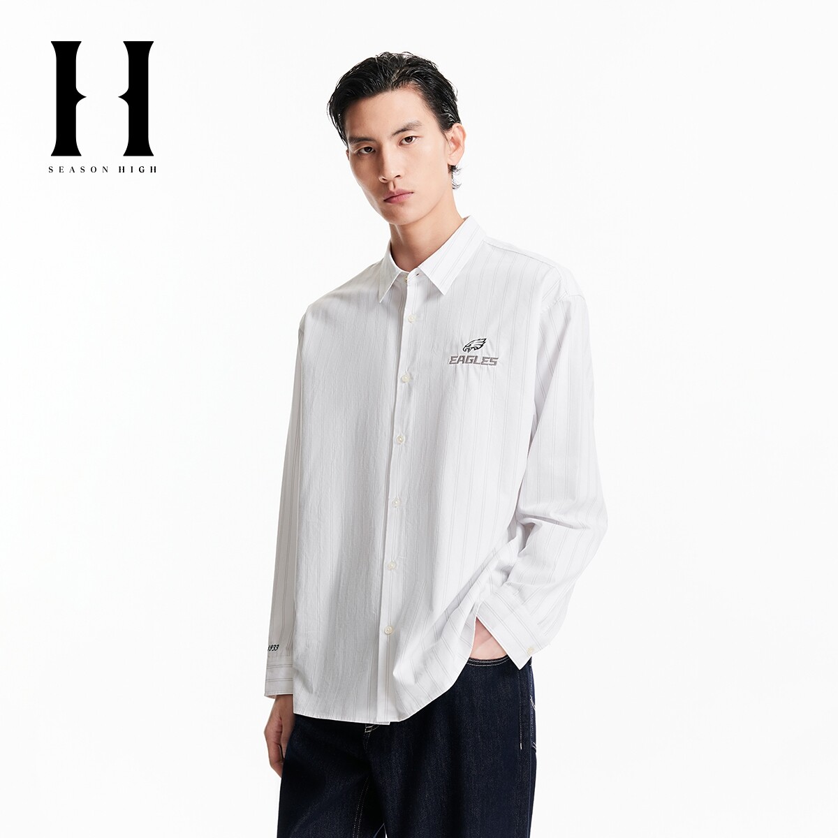 📚 SEASON HIGH男装NFL联名衬衫2025秋季老鹰队条纹刺绣字母长袖上衣