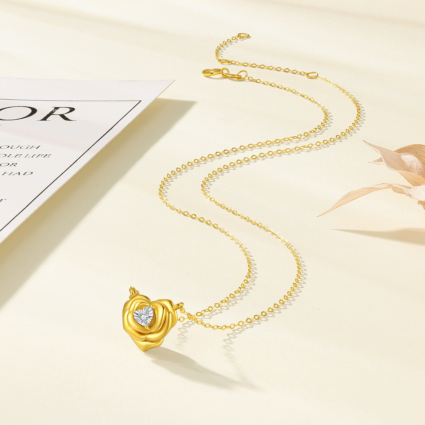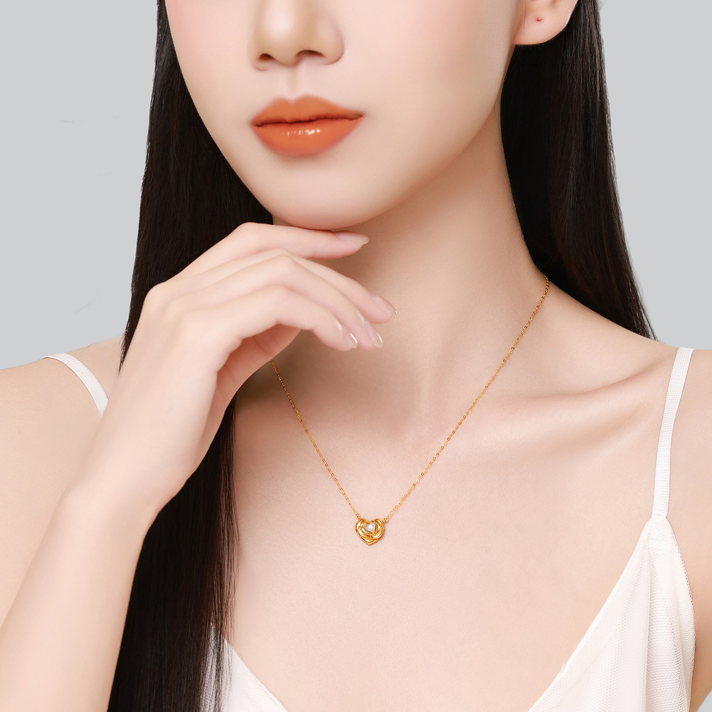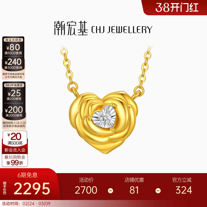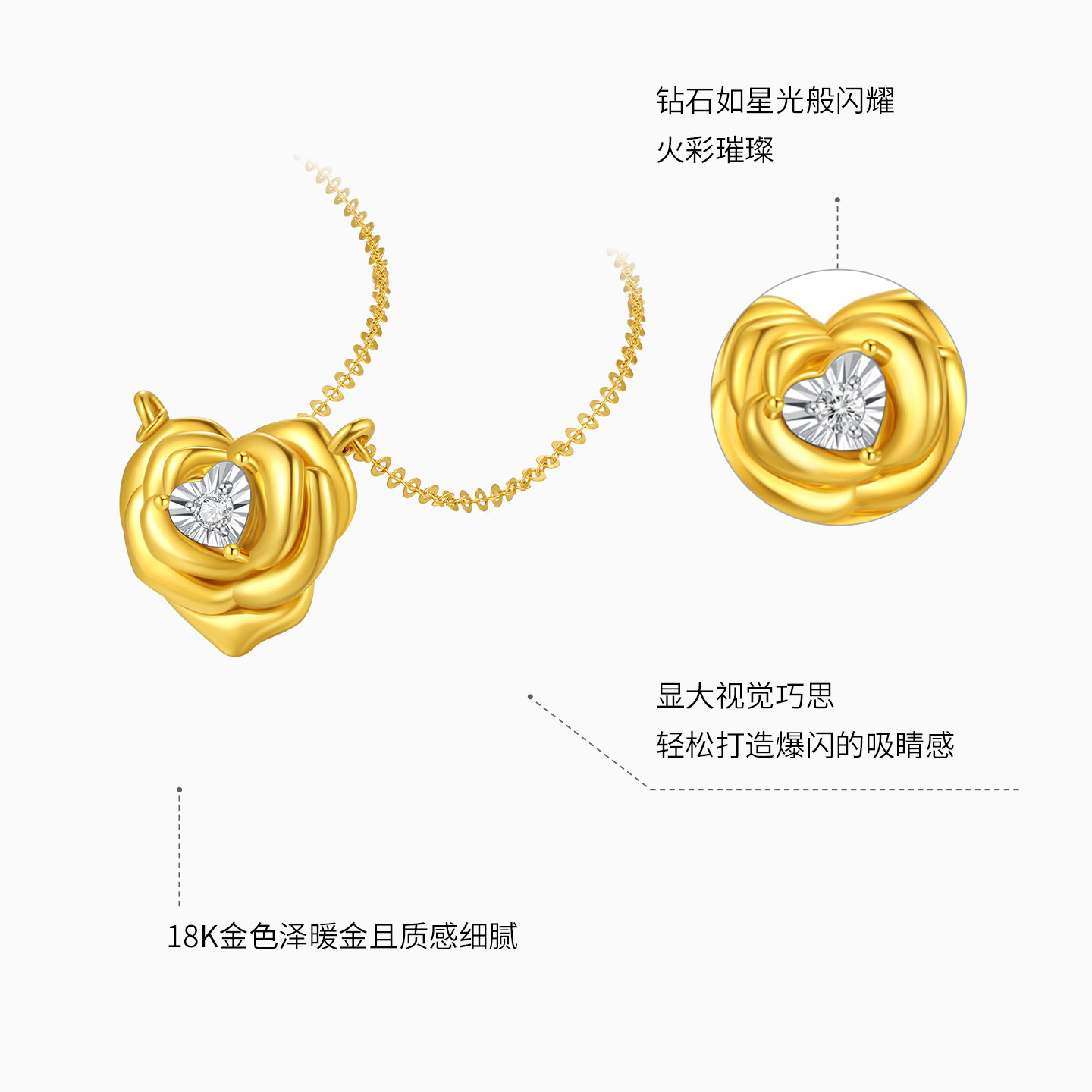 📚 潮宏基玫瑰爱心黄18K金钻石项链彩金坠链套链爆闪显大礼物妇女节