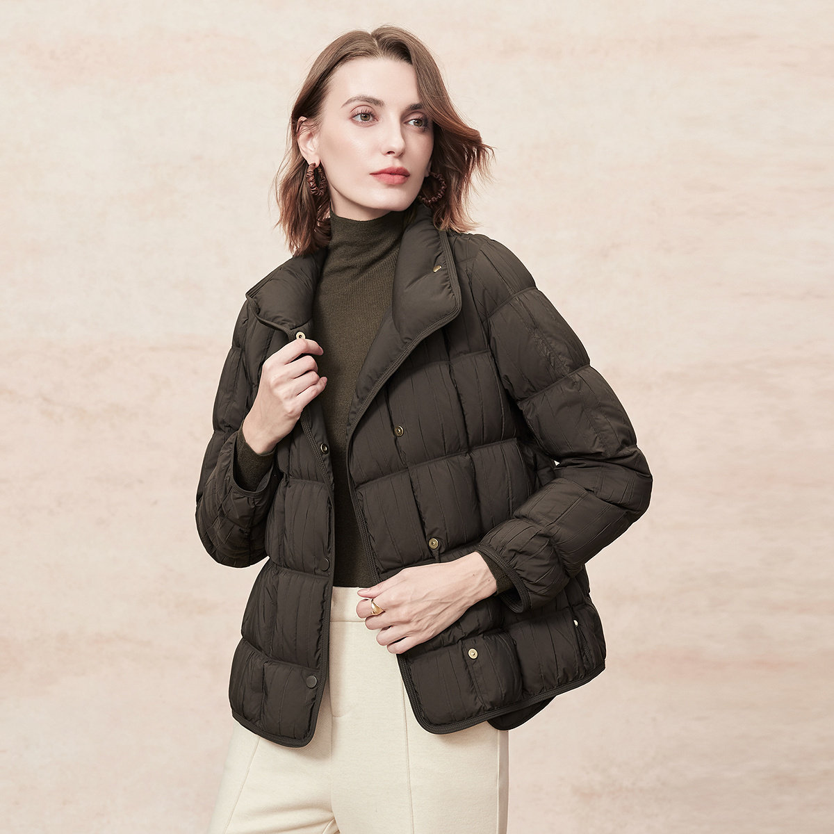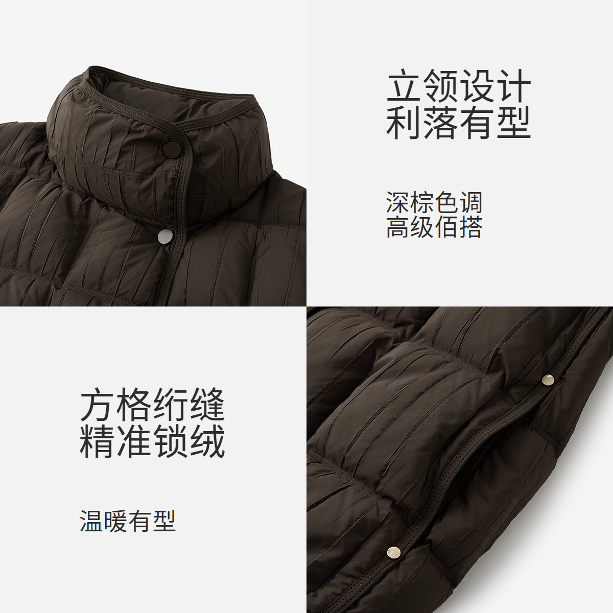 📚 FINITY菲妮迪白鹅绒羽绒服2025年冬季新款咖色立领短款保暖外套女