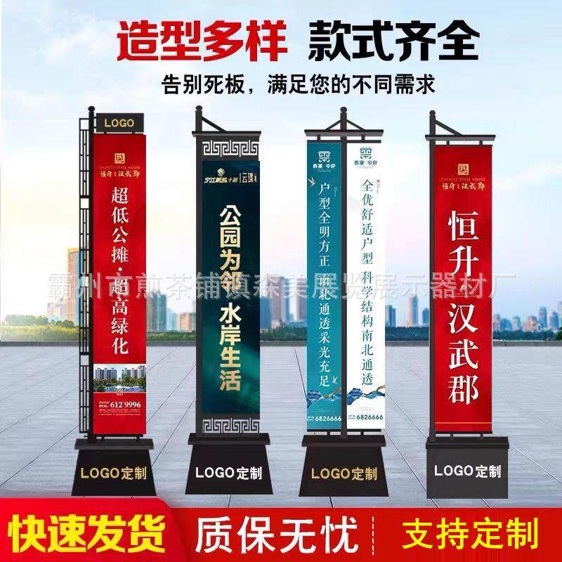📚 房地产开盘广告推广注沙方形刀型铝合金伸缩道旗3米5米7米加工