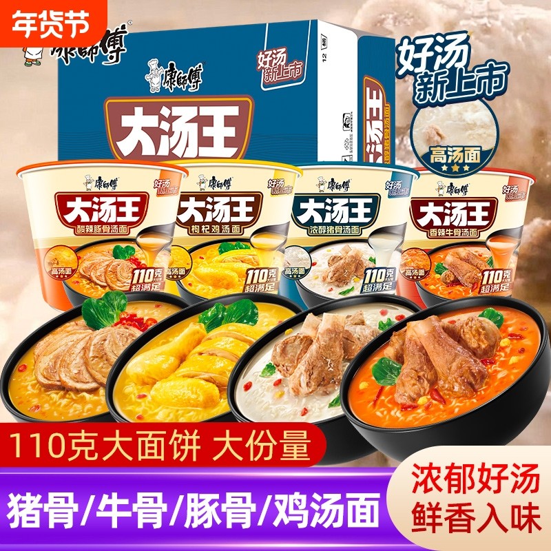 📚 康师傅大汤王桶装酸辣豚骨猪骨枸杞鸡汤面高汤方便面速食泡面整箱
