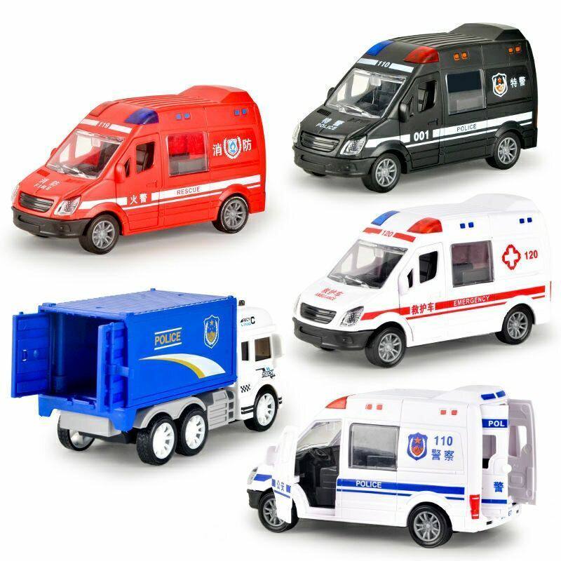 📚 可开门惯性儿童玩具车男女孩仿真救护车警车消防车模型小汽车套餐