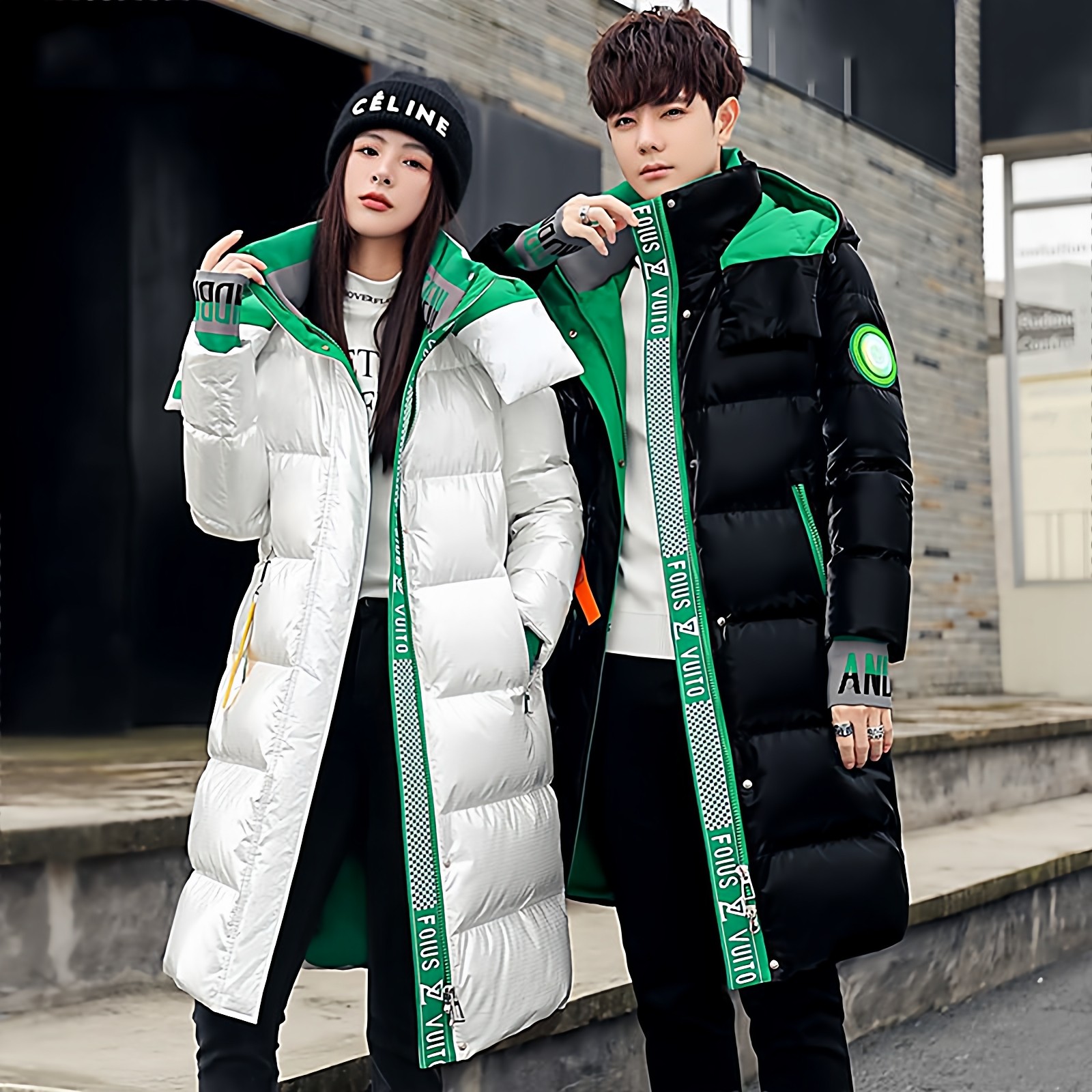 📚 免洗羽绒棉服女男中长款冬季过膝情侣款黑色加绒宽松大码外套女装
