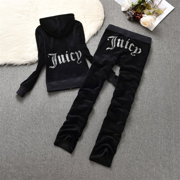 📚 juicy coconut天鹅绒运动套装女士长袖连帽修身钻春秋金丝绒卫衣