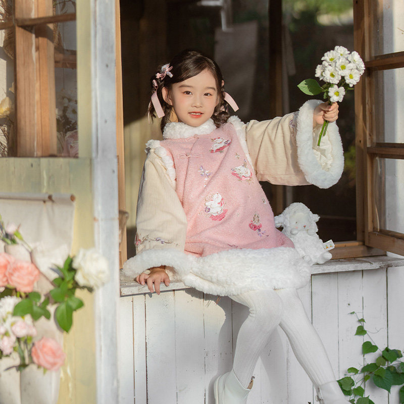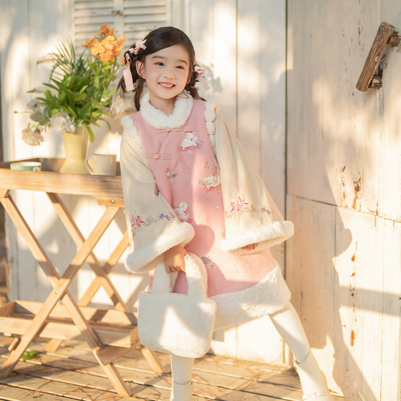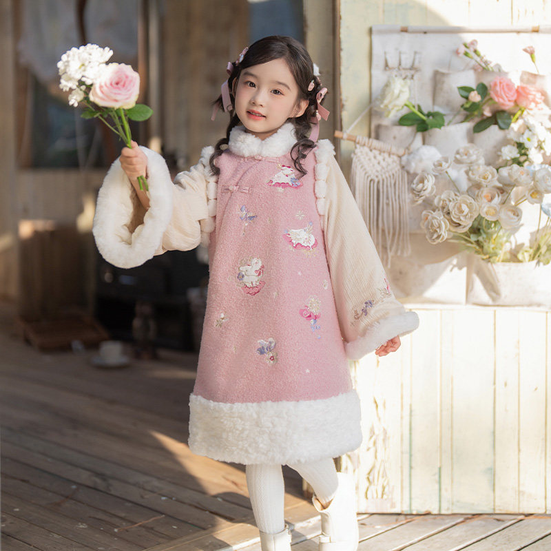 📚 十三余童装[云朵小羊]新中式国风连衣裙冬季新款毛绒拼接汉服女童