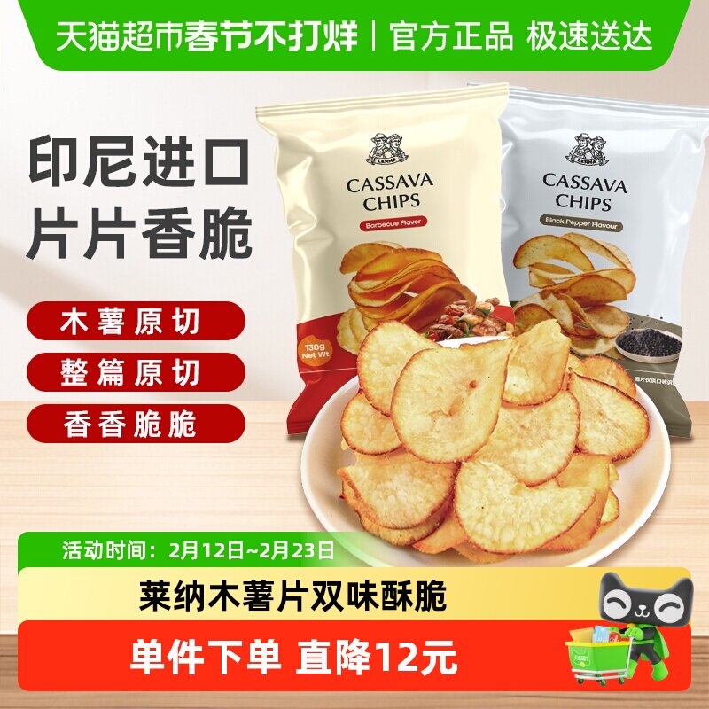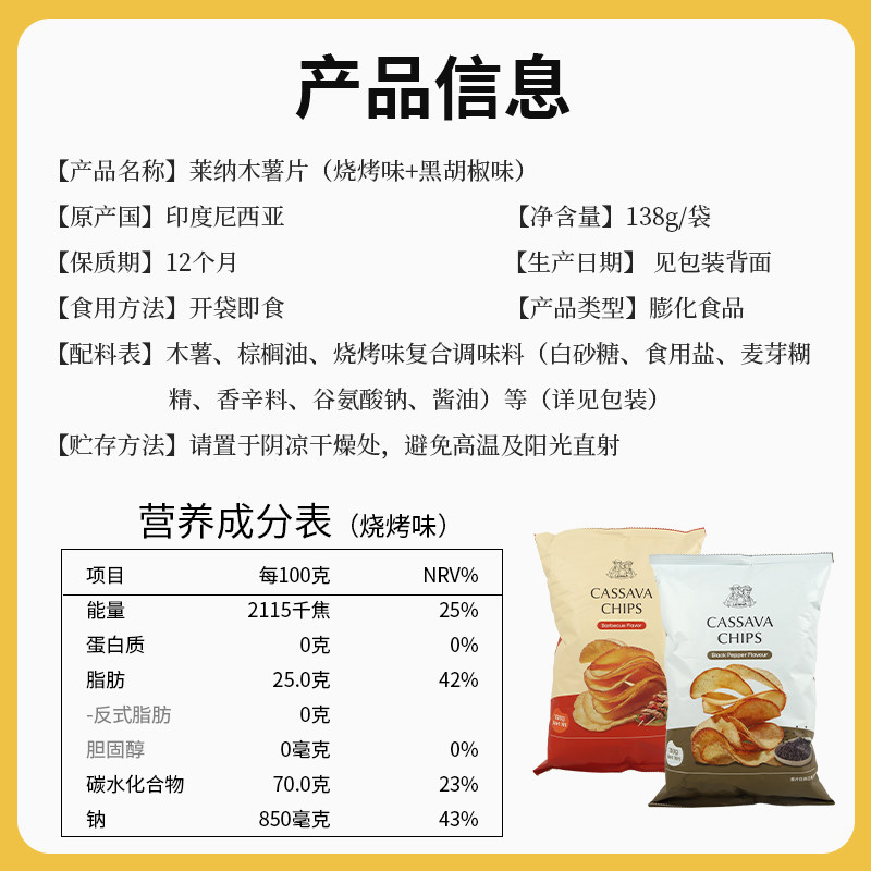 📚 印尼进口莱纳黑胡椒+烧烤味木薯片138g*2袋膨化零食休闲小吃食品