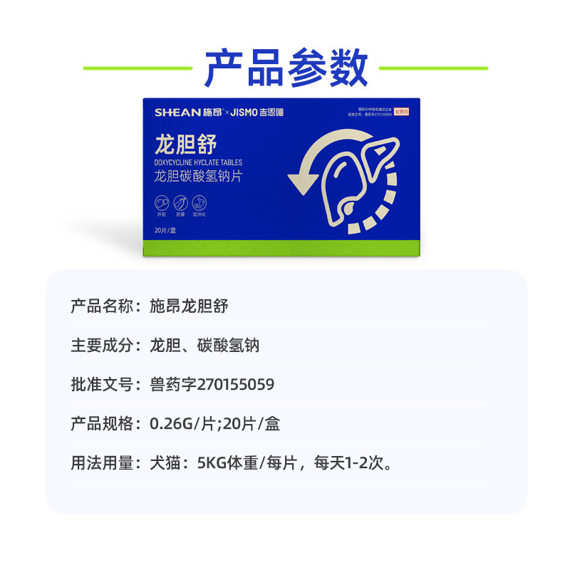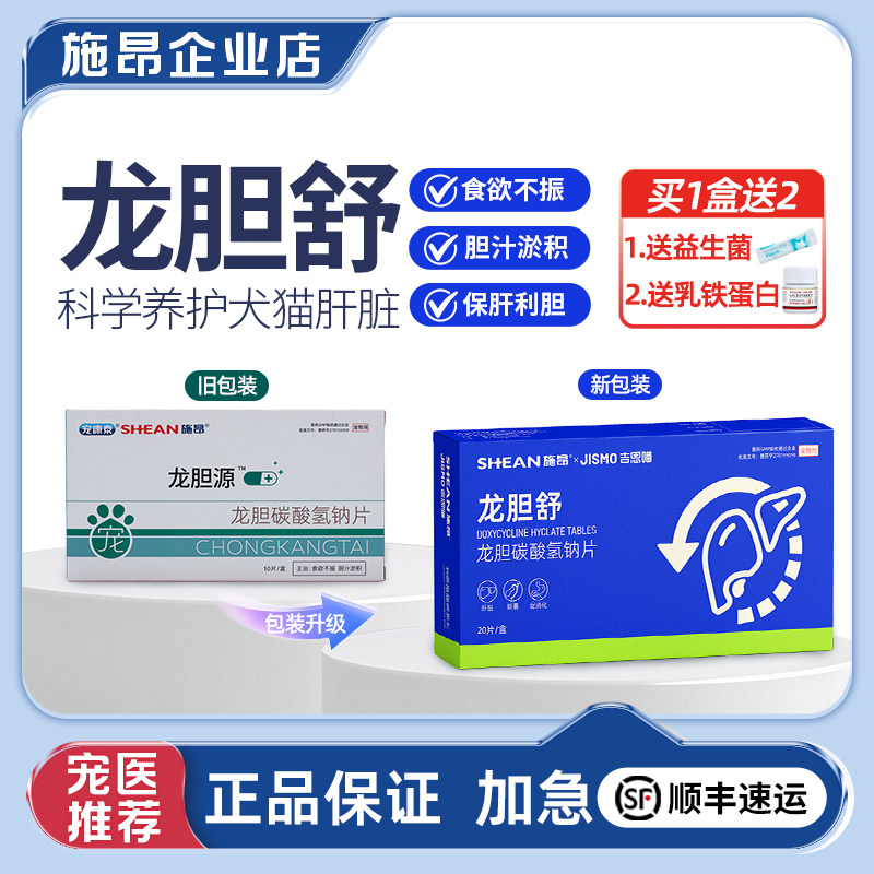 📚 施昂龙胆源龙胆舒碳酸氢钠片胆汁酸猫咪狗狗食欲胰腺肝炎保肝利胆