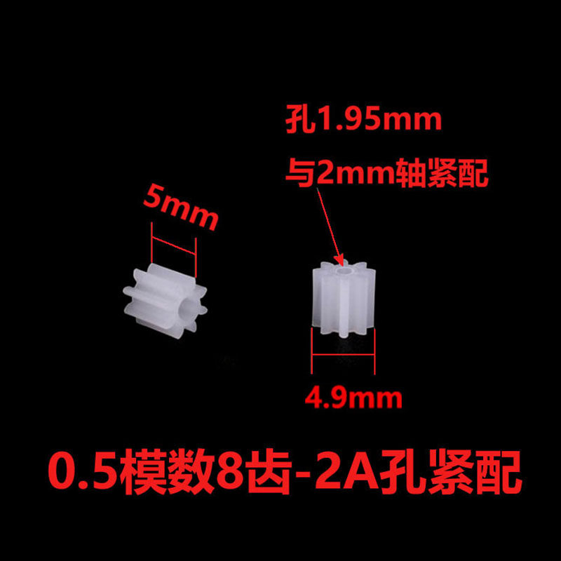 📚 0.5模数 8齿0.8/1/1.5/2A齿轮 玩具塑胶齿轮配件 5mm外径主轴齿轮