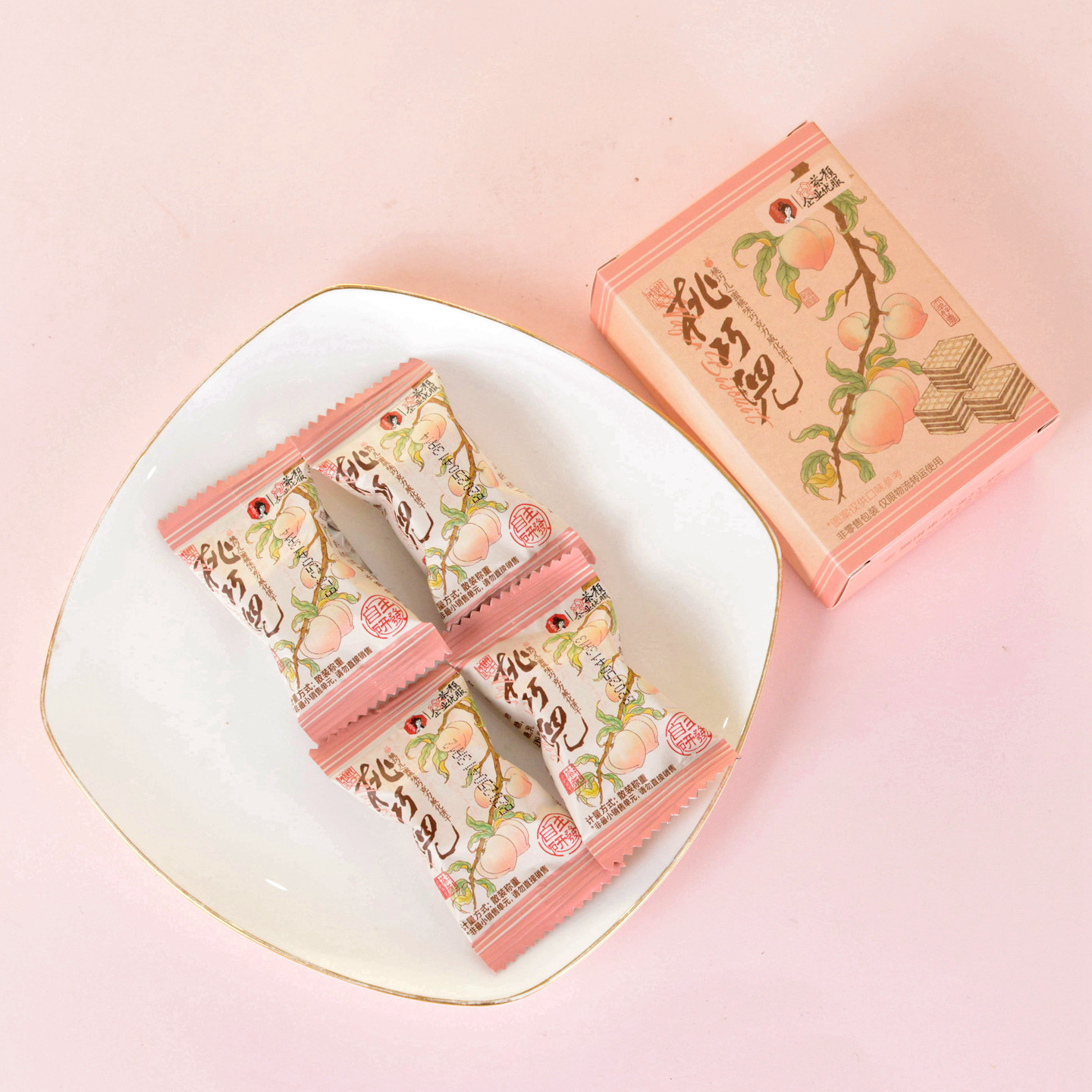 📚 茶颜悦色桃巧儿蜜桃味巧克力威化饼干结婚满月喜礼网红零食4袋/盒