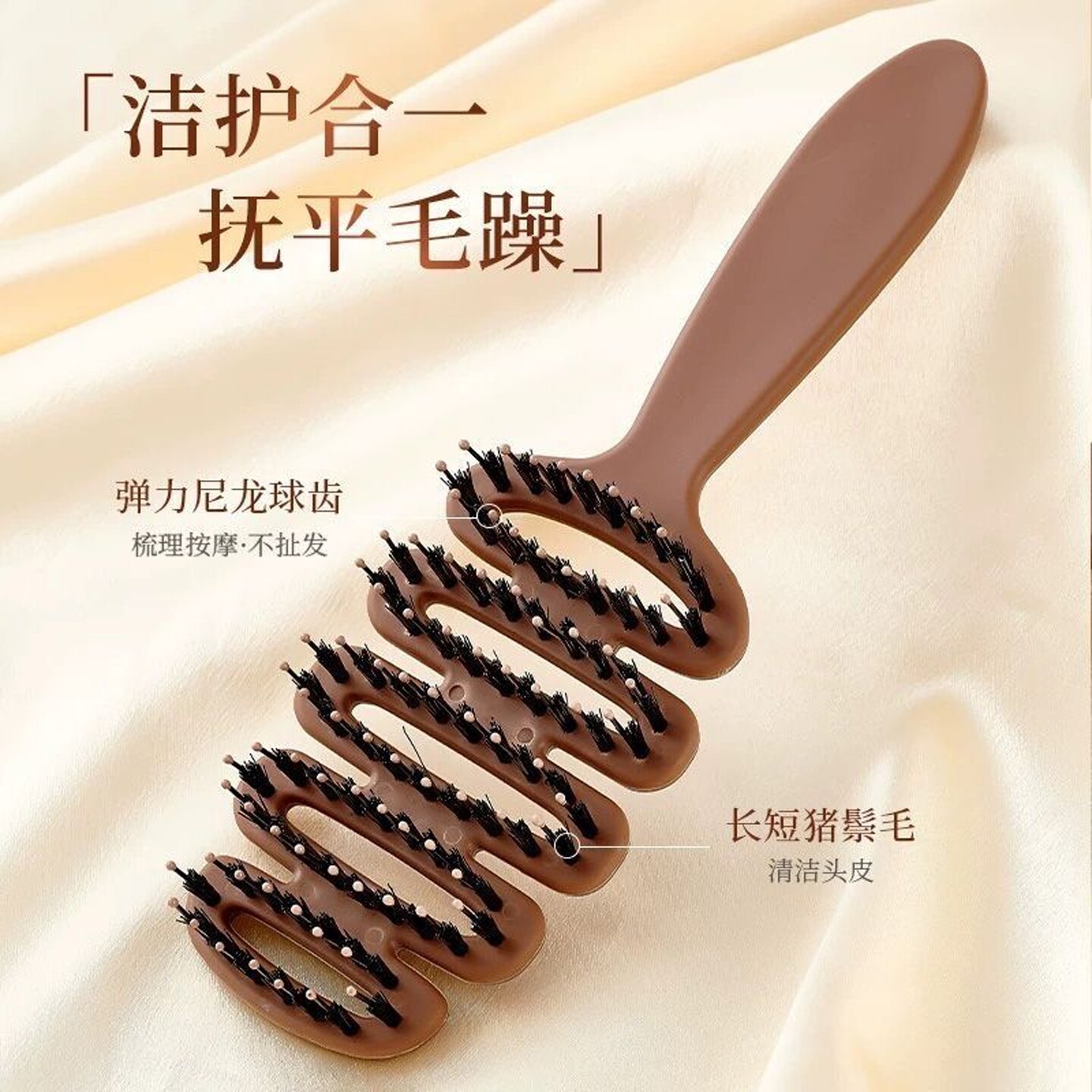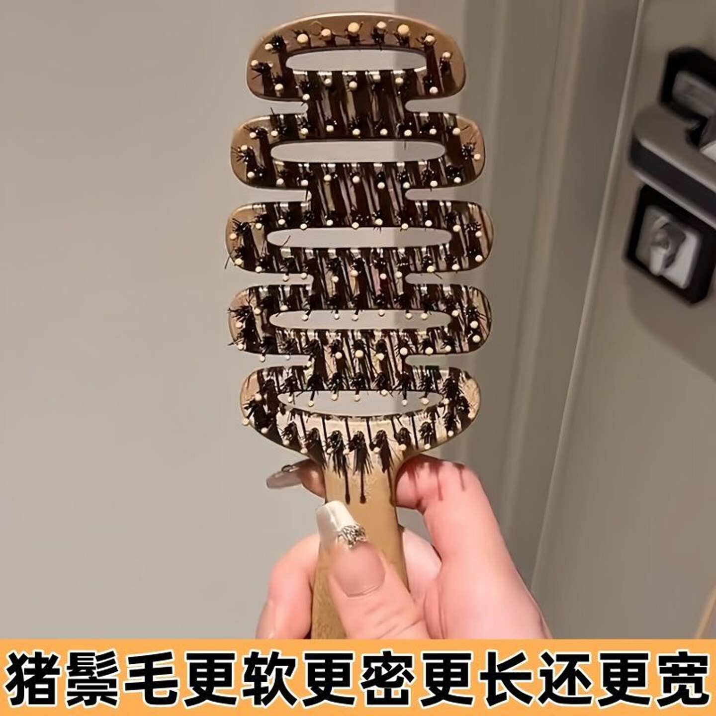📚 松塔猪鬃护发梳发顶蓬松神器按摩头部顺发排骨梳网红梳子女士专用
