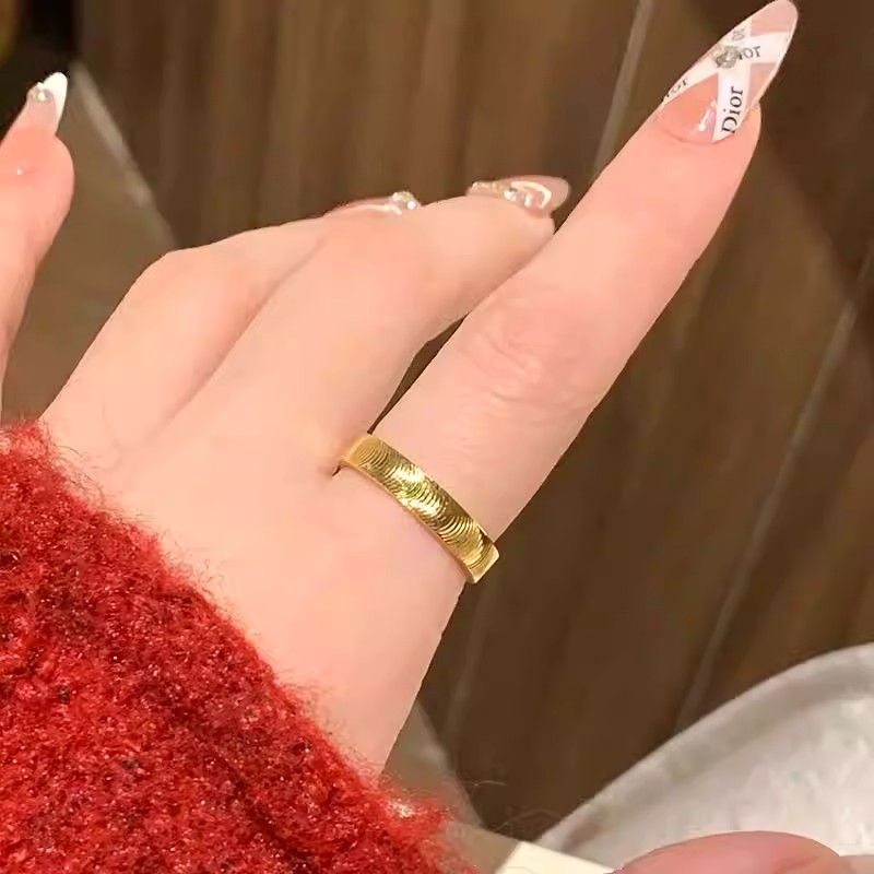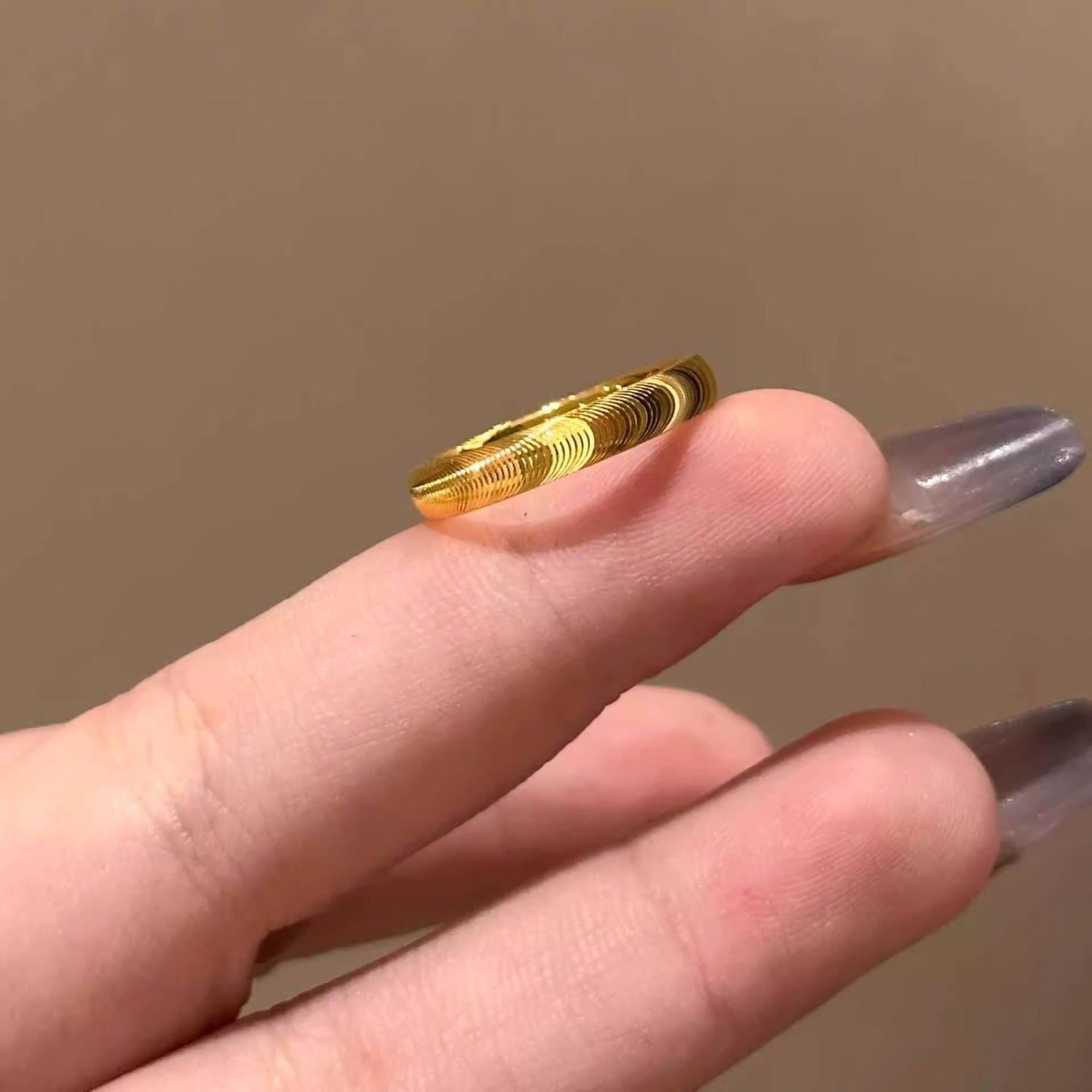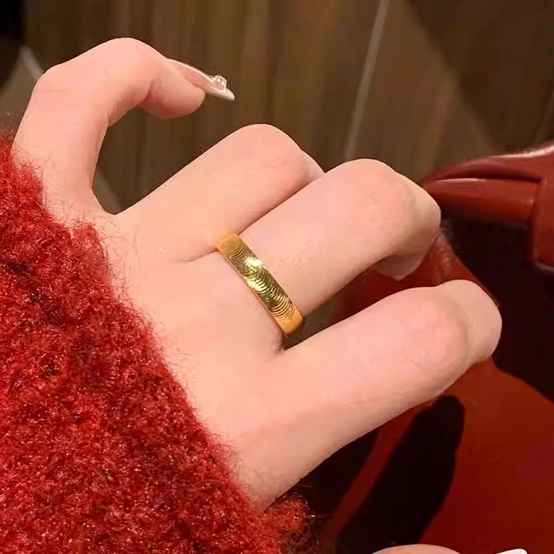 📚 猫眼戒指女素圈波纹指环爆闪5D硬金实心亮面情侣对戒
