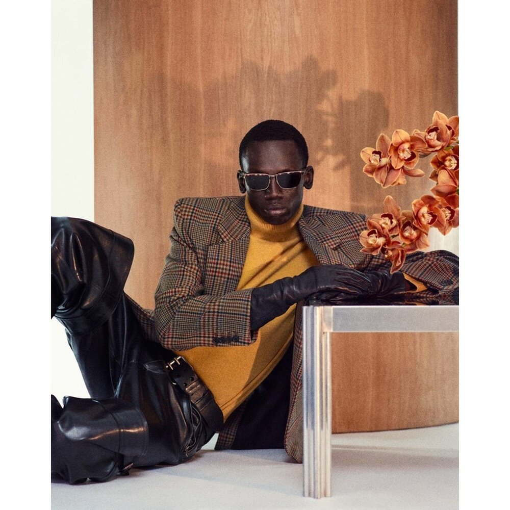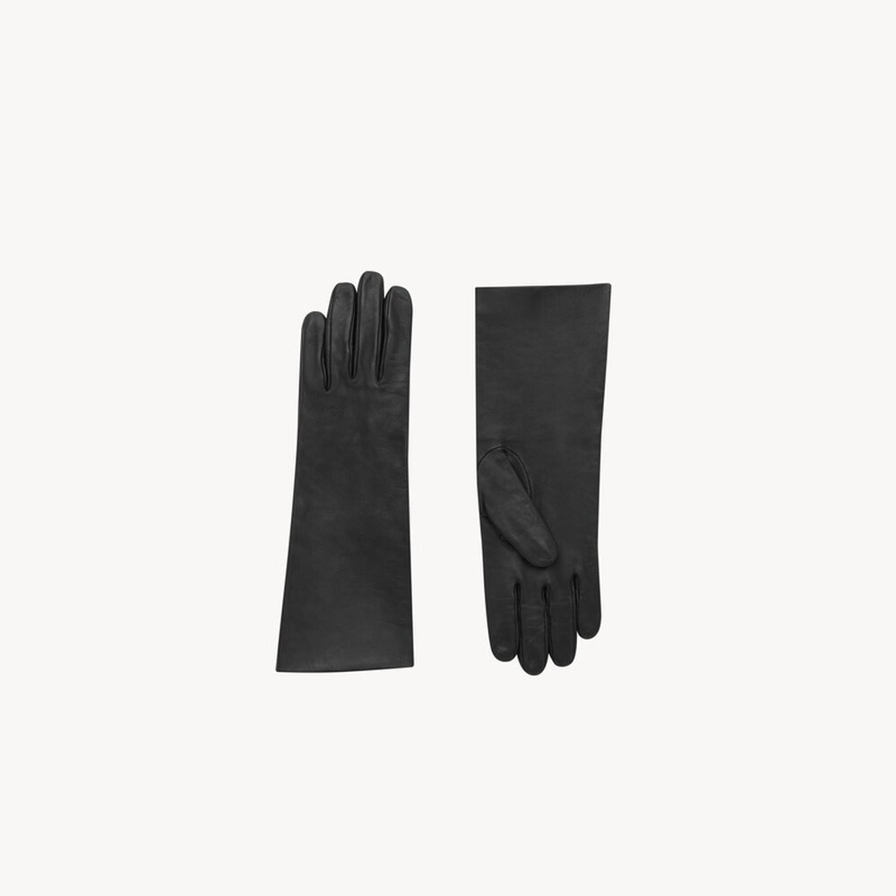 📚 自营欧洲直邮YSL圣罗兰 男士黑色羔羊皮logo标识手套