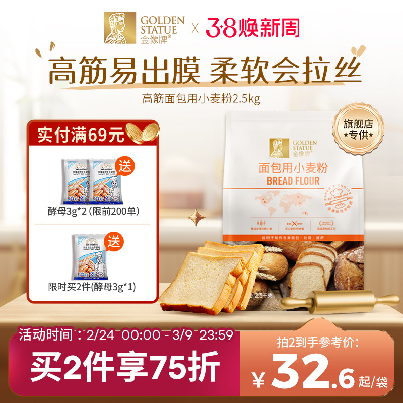 📚 金像牌高筋面粉2.5kg面包粉吐司粉家用面包专用粉烘焙原料小麦粉