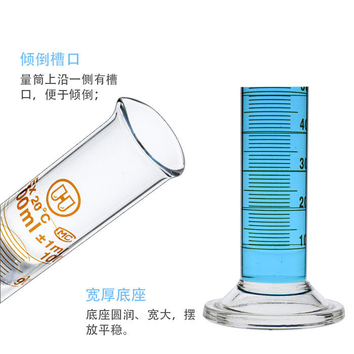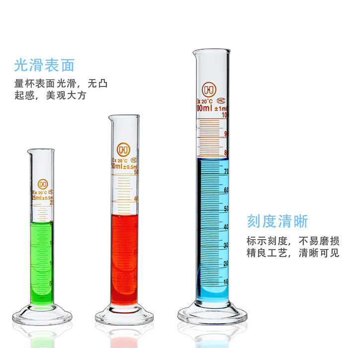 📚 华鸥玻璃量筒A级可过检带刻度量桶5 10 25 50 100 250 500 1000ml